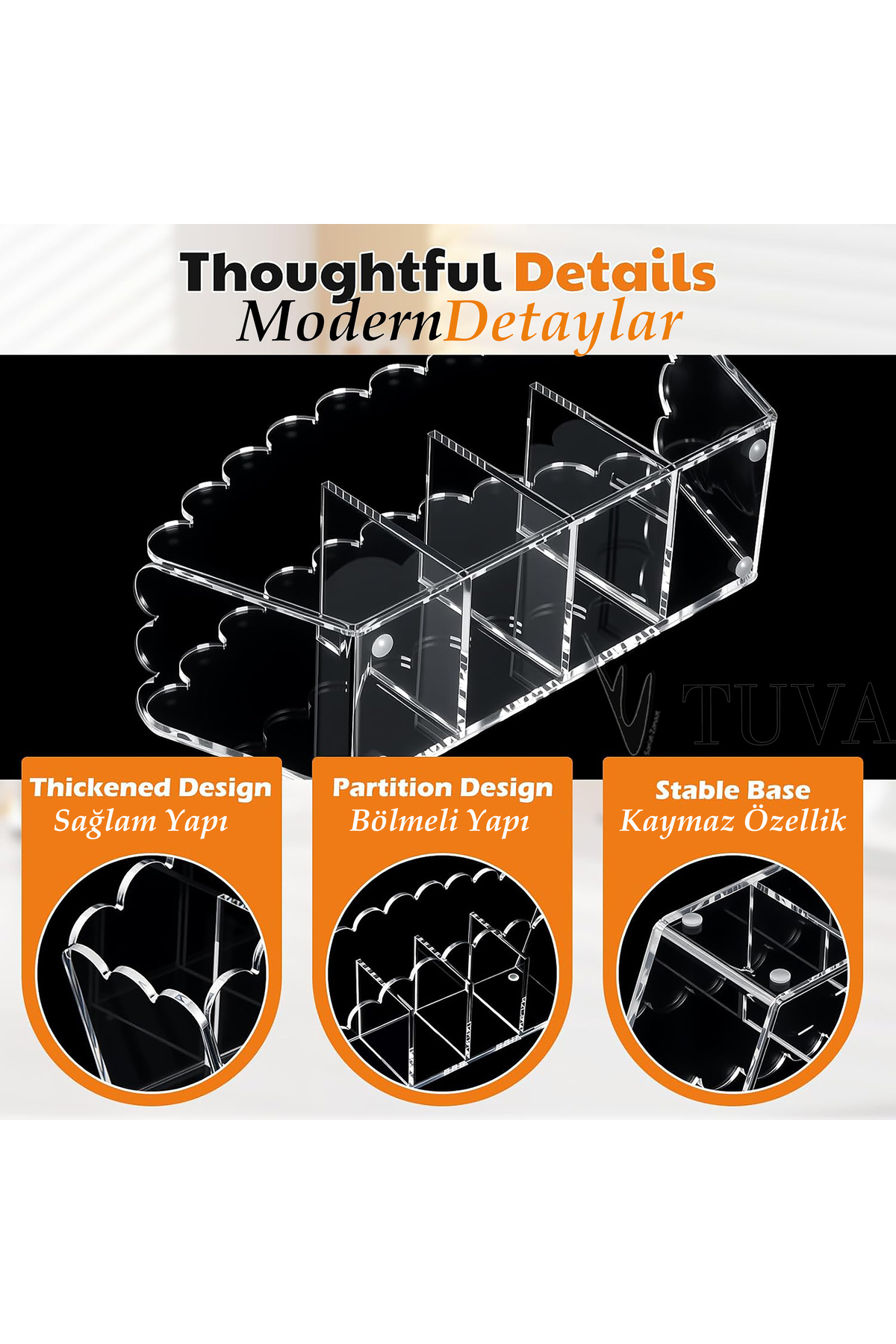 TUVA - 3 Bölmeli Yuvarlak Kenar Kıvrımlı Makyaj Organizer | Modern Şık Pleksi Dolap İçi Düzenleyici TUVA - 3 Bölmeli Yuvarlak Kenar Kıvrımlı Makyaj Organizer | Modern Şık Pleksi Dolap İçi Düzenleyici TVAUCBLMDLGLKVRM180115 تک سایز