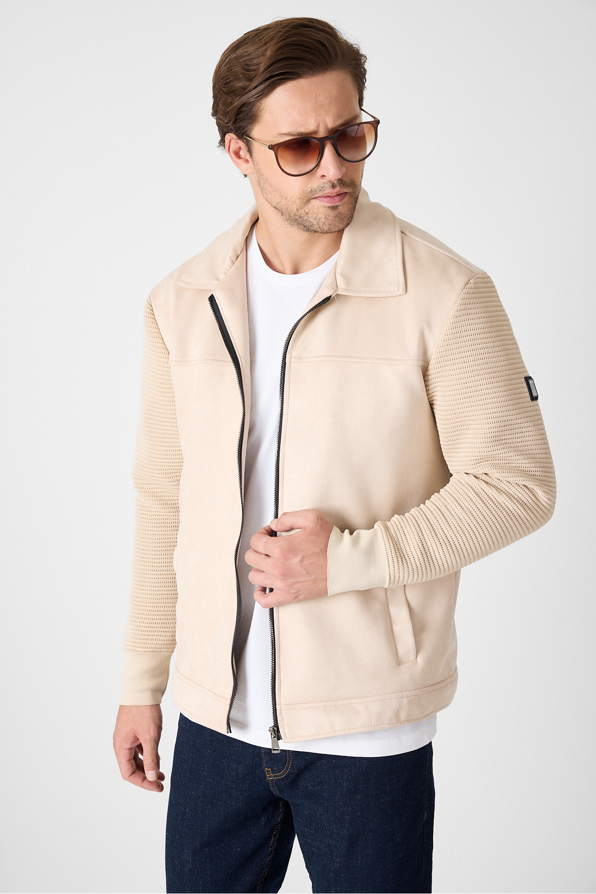 ERKEK REGULAR FİT YAKALI FERMUARLI ASTARLI NUBUK CEKET/MONT ERKEK REGULAR FİT YAKALI FERMUARLI ASTARLI NUBUK CEKET/MONT NBC1 2XL