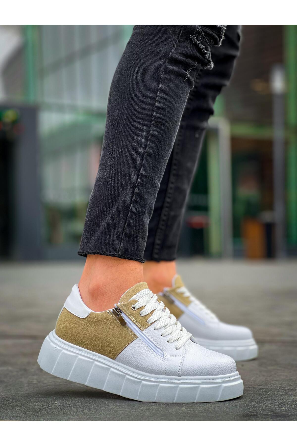TWINNY Beyaz Cilt Bej Süet Detaylı Beyaz Yüksek Taban Günlük Spor Ayakkabı - KBC TWINNY Beyaz Cilt Bej Süet Detaylı Beyaz Yüksek Taban Günlük Spor Ayakkabı - KBC KBC-KBX155 44