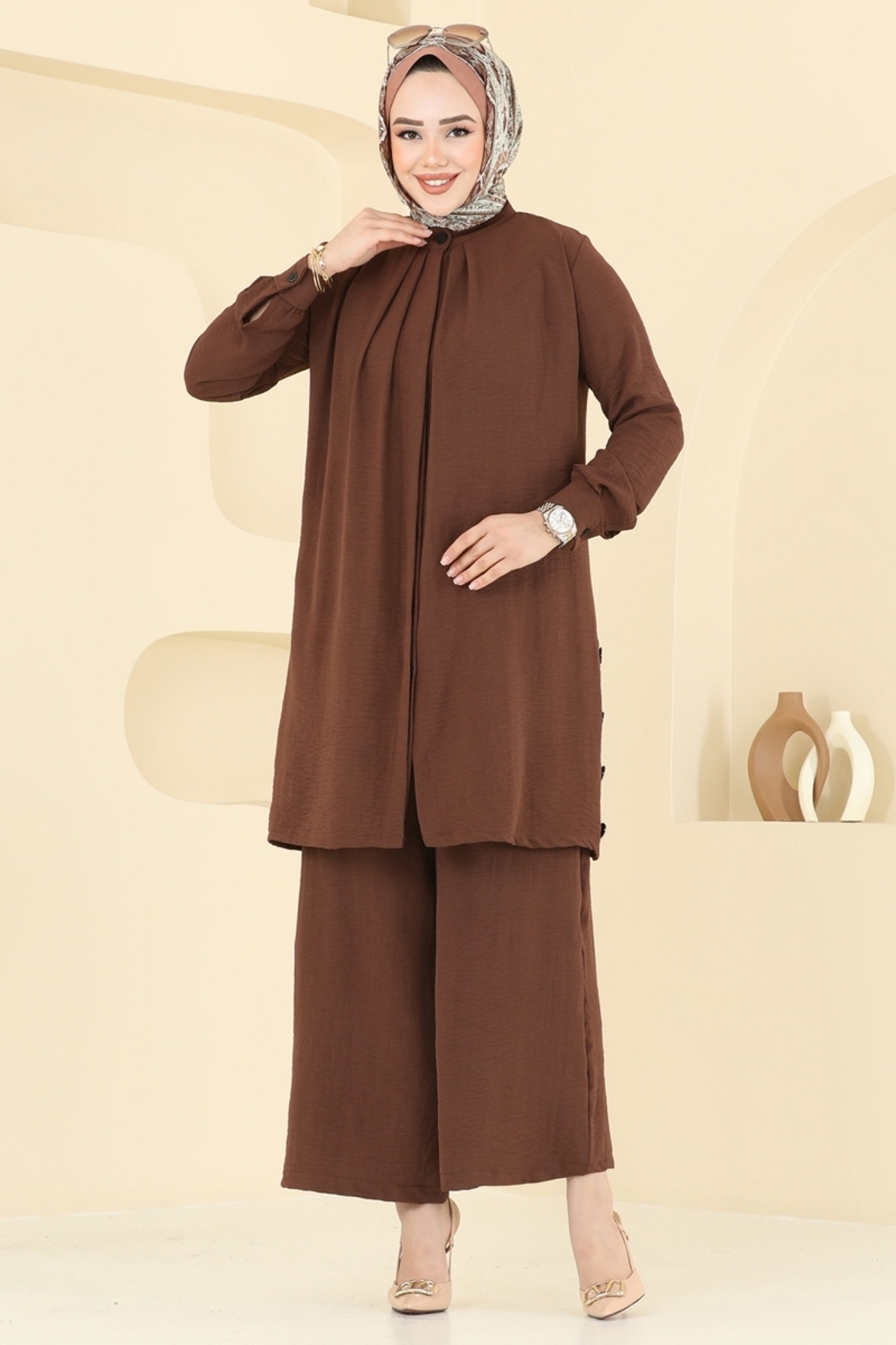 Yırtmaç Düğmeli Tesettür Takım 3100HBS856-MS Koyu Vizyon Yırtmaç Düğmeli Tesettür Takım 3100HBS856-MS Koyu Vizyon 52