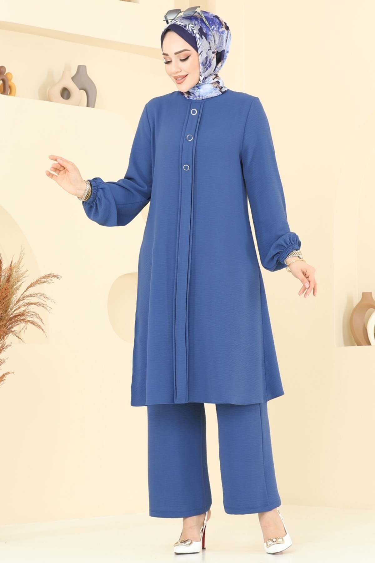 Önden Düğmeli Tesettür Takım 2019MEY846-MS İndigo Önden Düğmeli Tesettür Takım 2019MEY846-MS İndigo 52