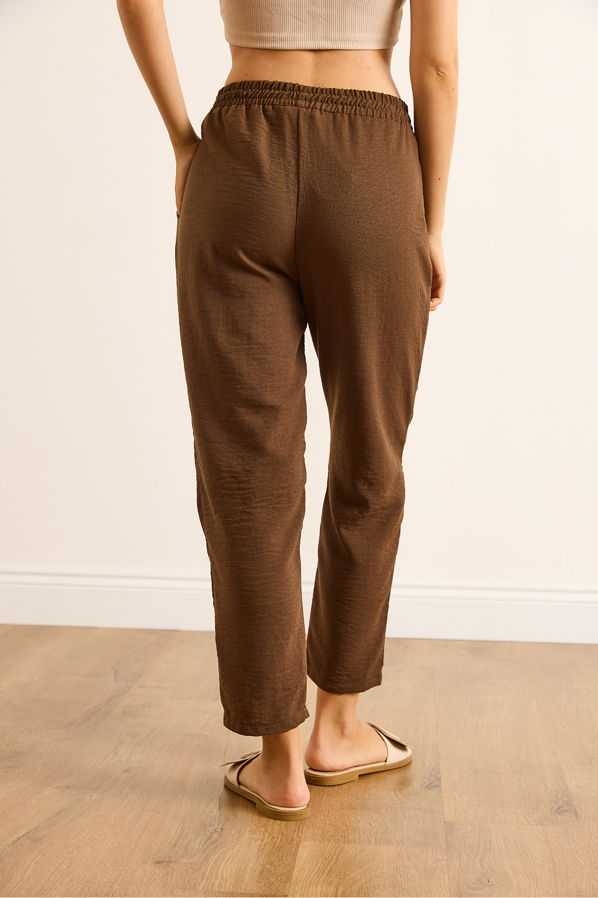 Kadın Acı Kahve Beli Lastikli Cepli Dökümlü Havuç Pantolon PNT-19000361 Kadın Acı Kahve Beli Lastikli Cepli Dökümlü Havuç Pantolon PNT-19000361 XL