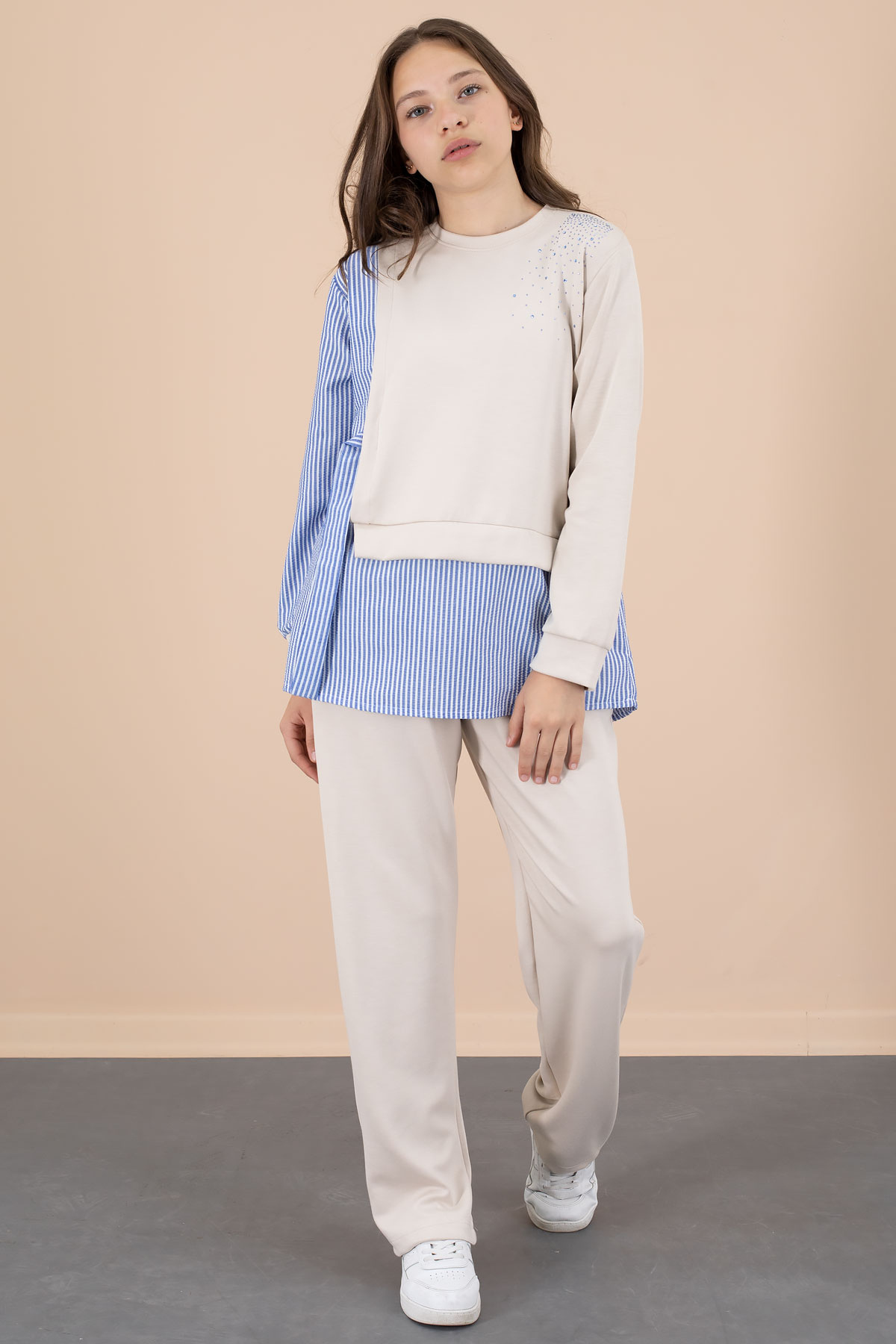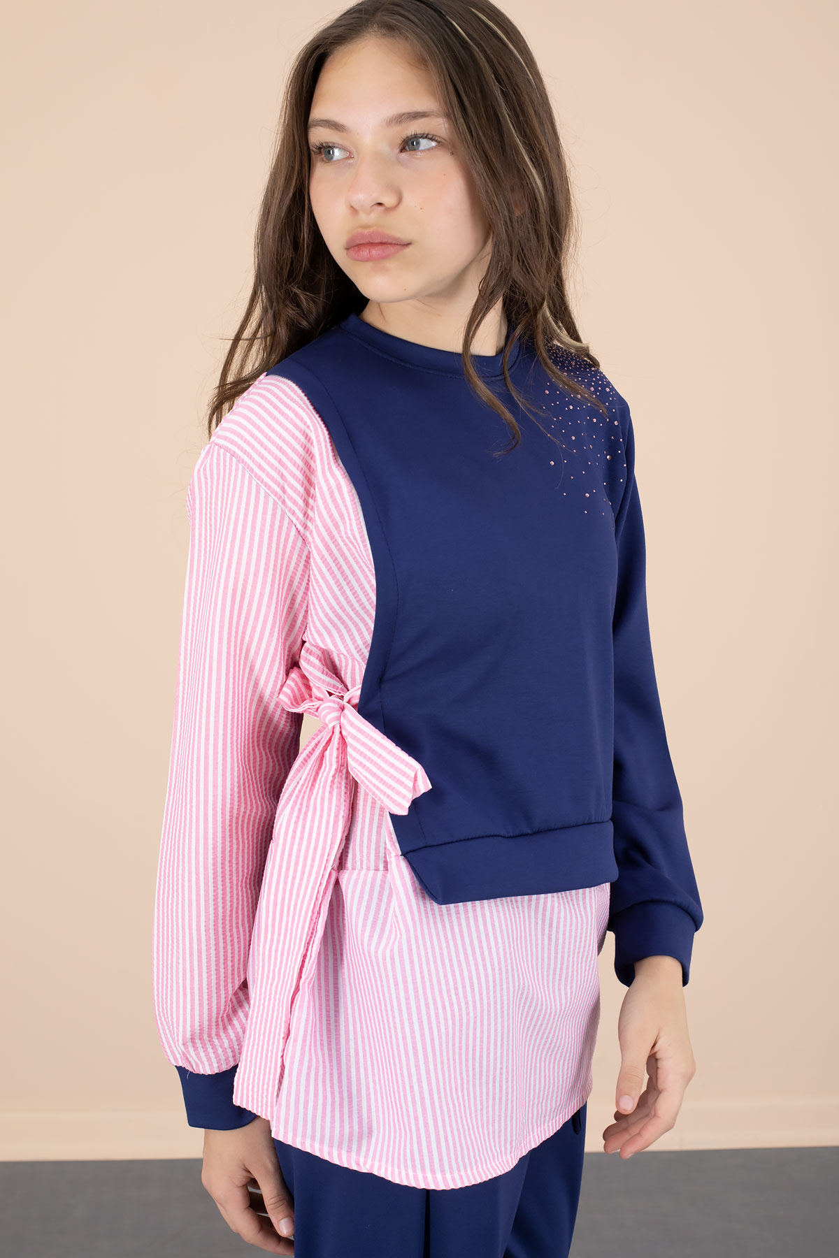 Lacivert Çizgi Desenli Taş Detaylı Bluzlu Kız Çocuk Kuşaklı Pantolonlu 2li Takım 20662 Lacivert Çizgi Desenli Taş Detaylı Bluzlu Kız Çocuk Kuşaklı Pantolonlu 2li Takım 20662 GRPCM00020662 12-13 Yaş