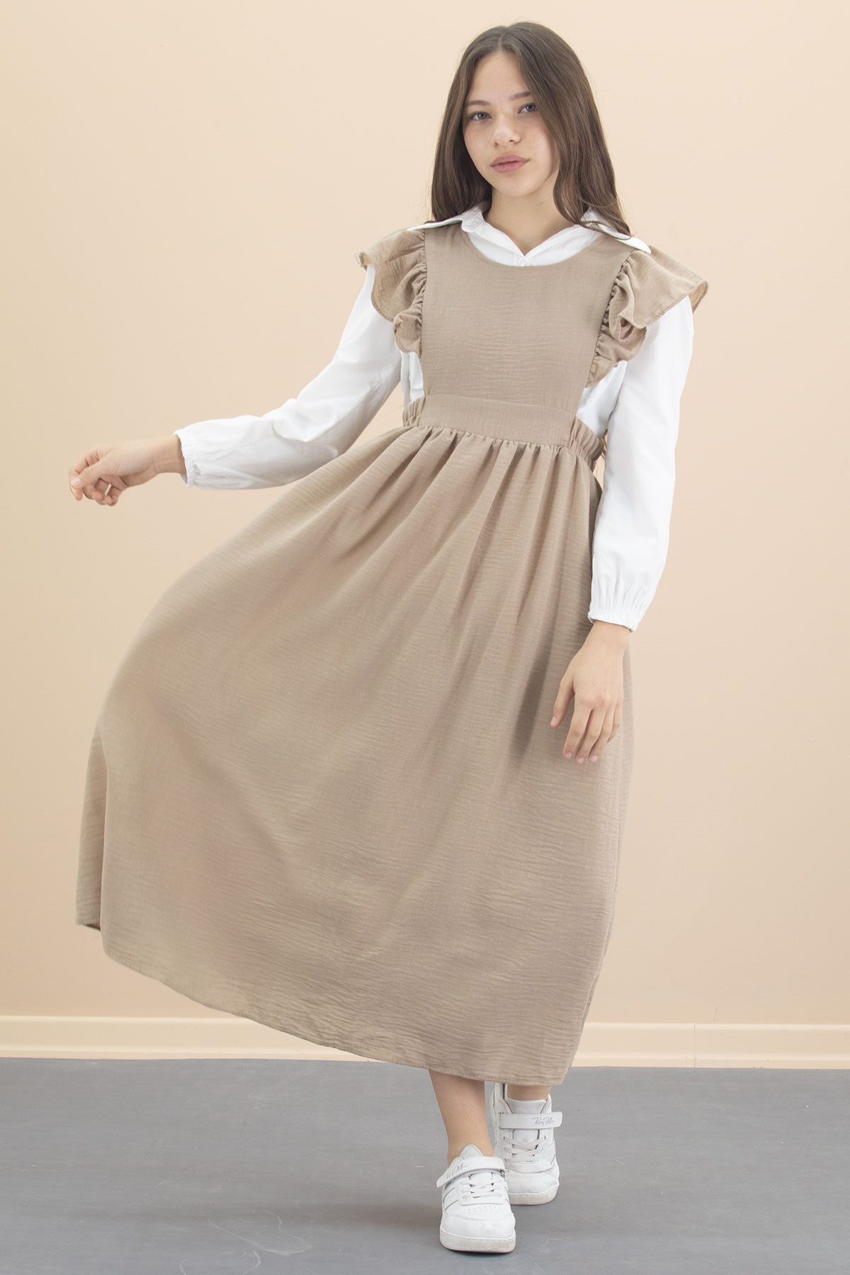 Bej Fırfır Detaylı Uzun Kol Gömlekli Kız Çocuk Uzun Kesim Elbise 20555 Bej Fırfır Detaylı Uzun Kol Gömlekli Kız Çocuk Uzun Kesim Elbise 20555 GRPCM00020554 15-16 Yaş