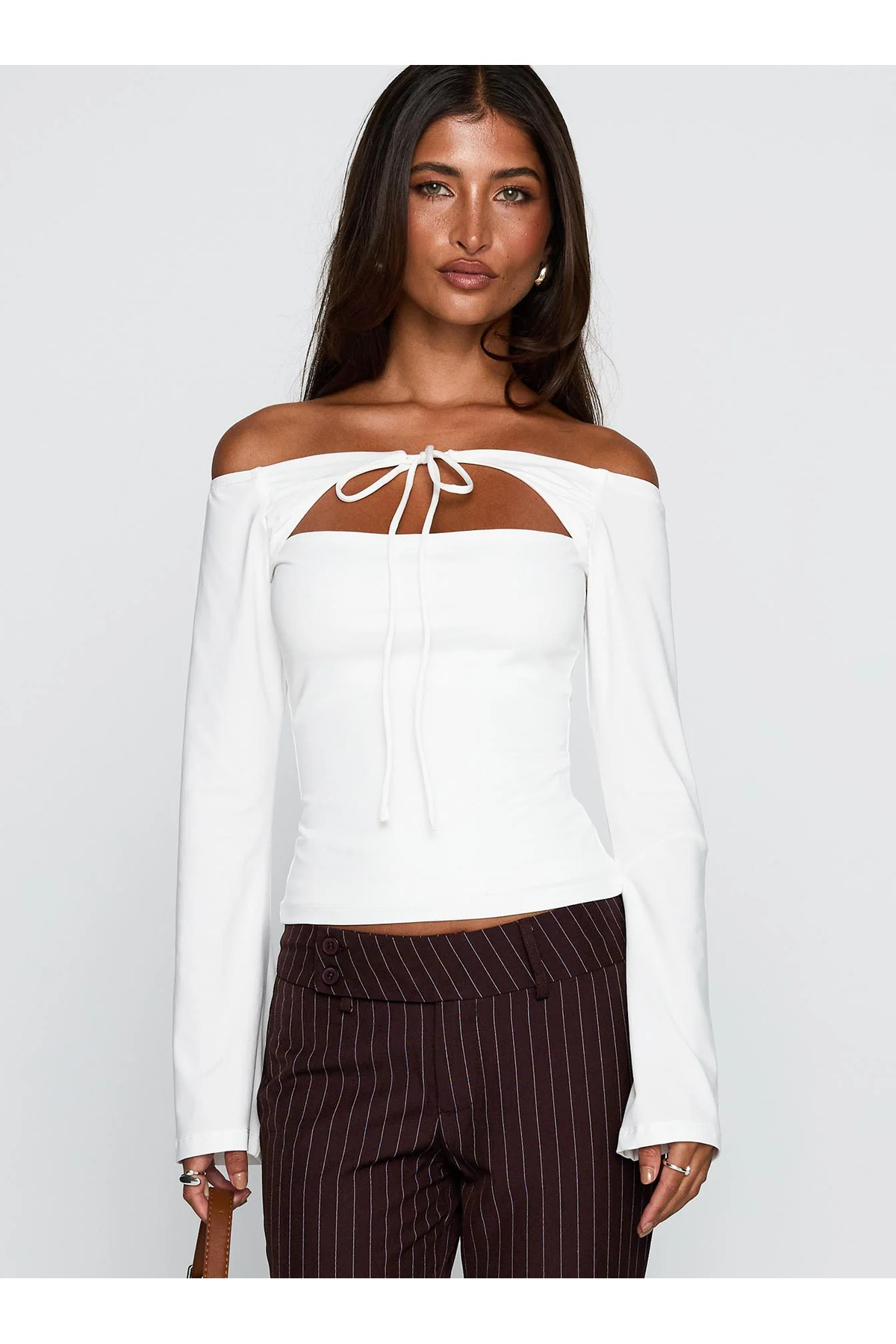 Beyaz Uzun Kollu Kalp Yaka Drapeli Kadın Bluz Beyaz Uzun Kollu Kalp Yaka Drapeli Kadın Bluz fblr2025070801 XL