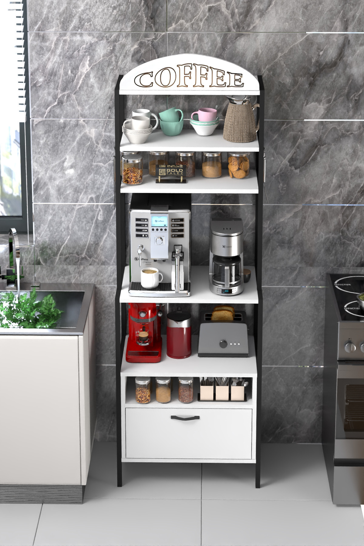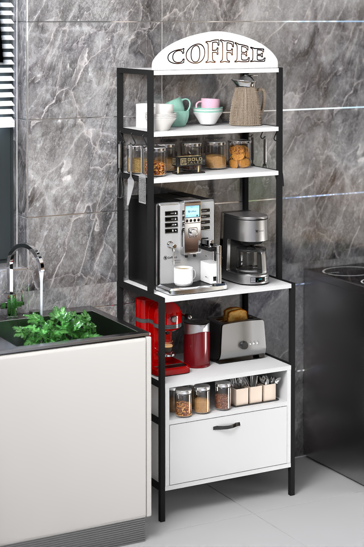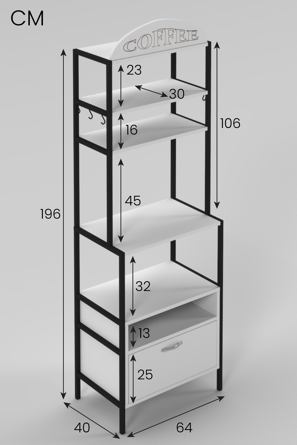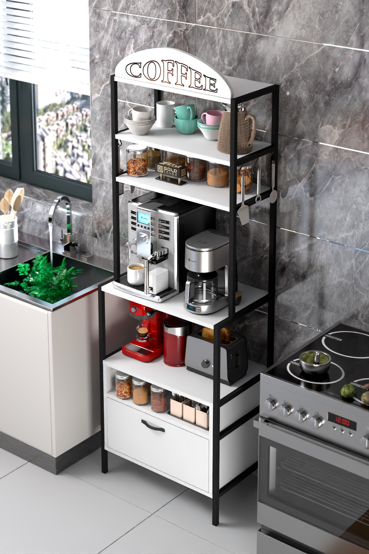 Kahve Köşesi Metal Profil Çerçeveli Çok Amaçlı Kahve ve Mutfak Rafı Beyaz Kahve Köşesi Metal Profil Çerçeveli Çok Amaçlı Kahve ve Mutfak Rafı Beyaz COFFEE تک سایز