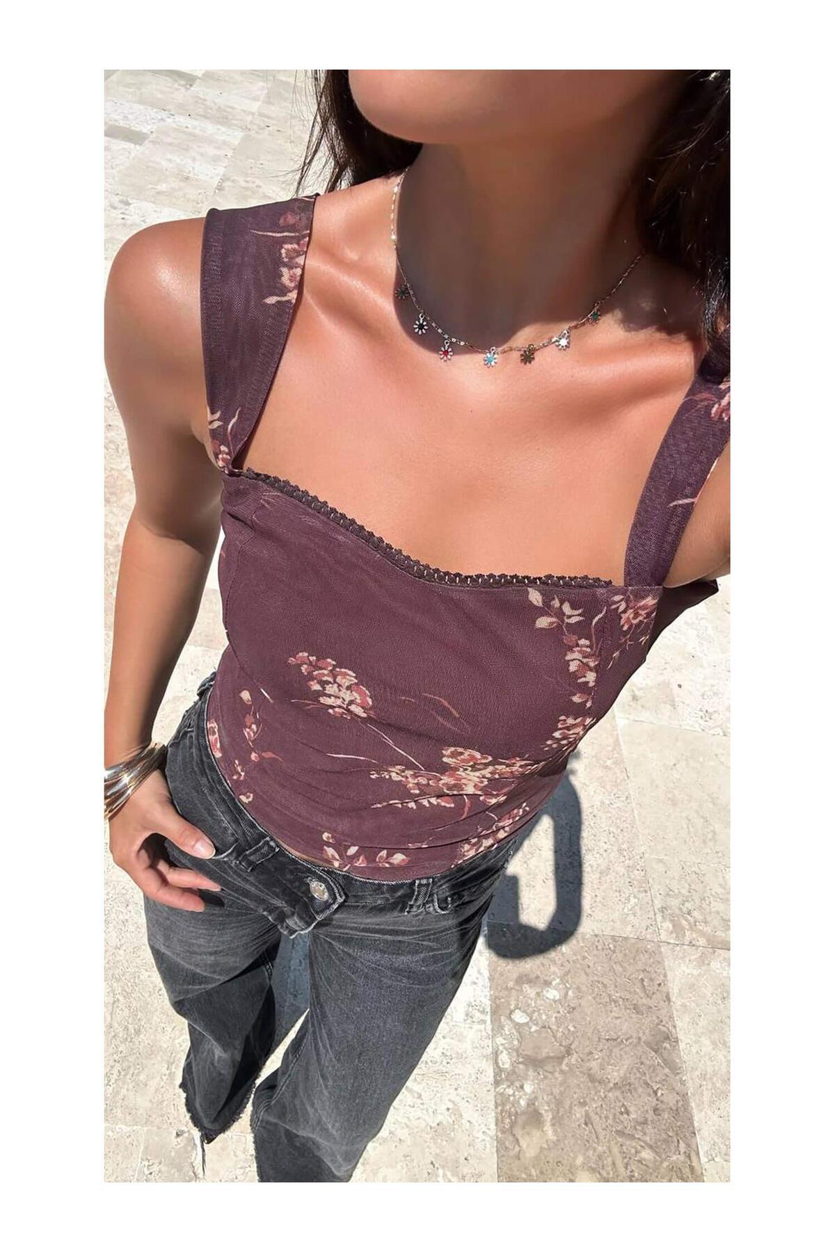 Sırtı Gipeli Desenli Askılı Bluz Kahve Sırtı Gipeli Desenli Askılı Bluz Kahve W25S-TET-00113 L