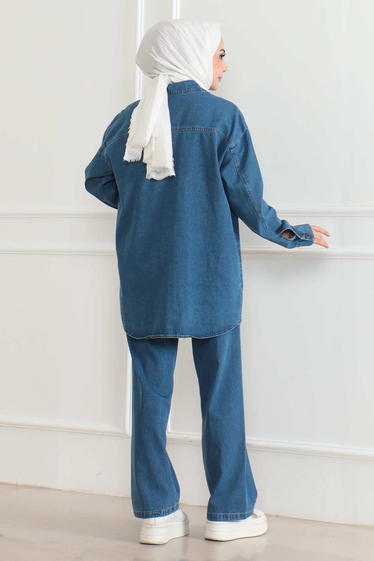 Cepli Taş Detaylı Kot Takım Mavi 19207 Cepli Taş Detaylı Kot Takım Mavi 19207 48
