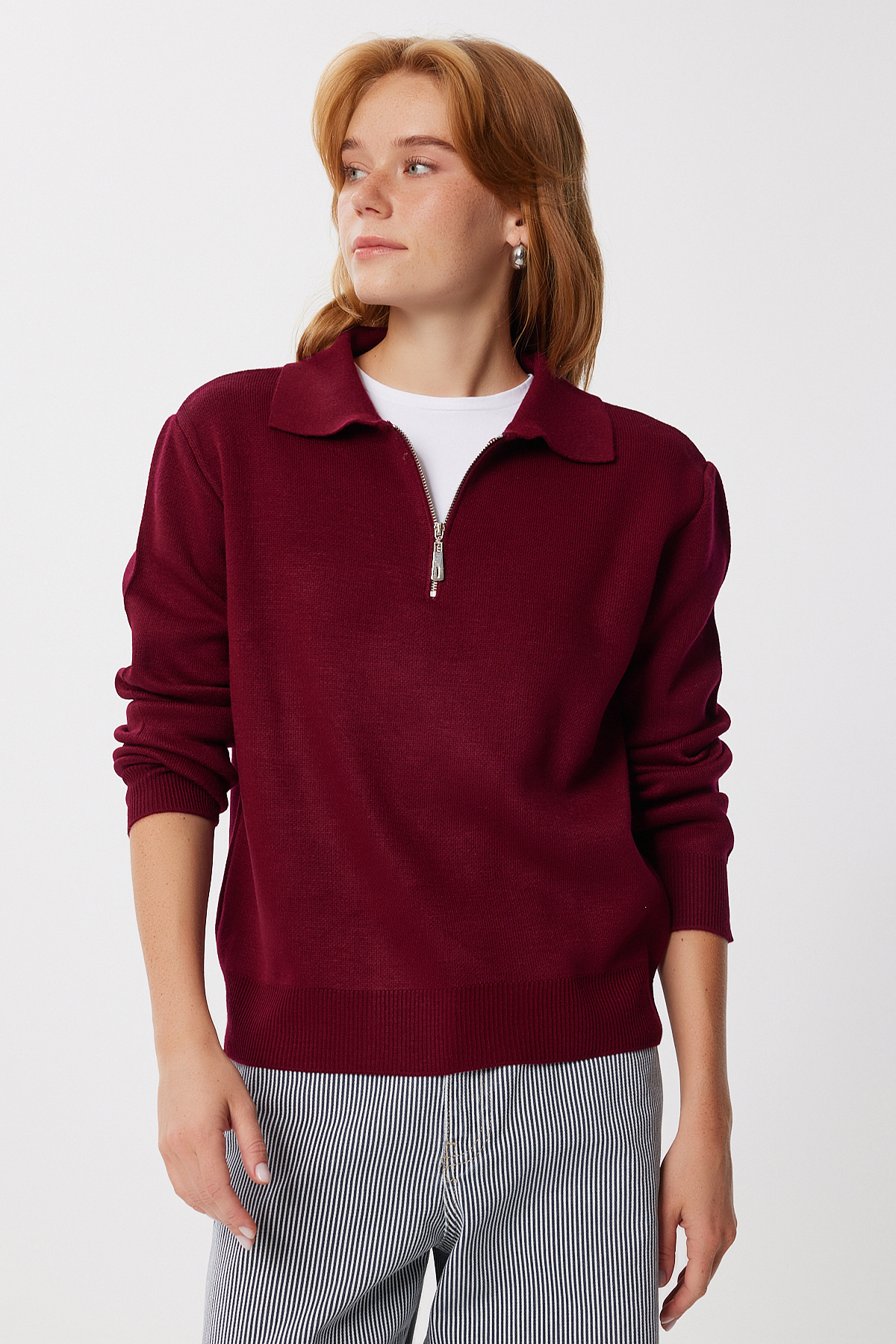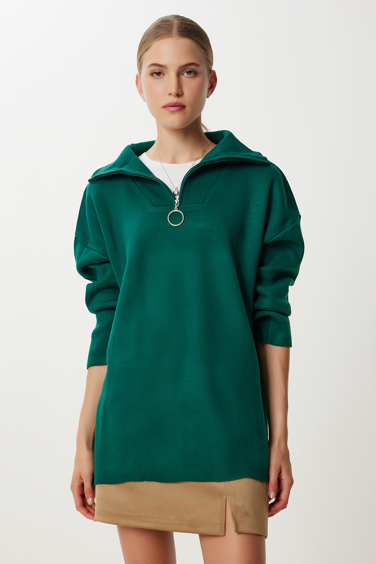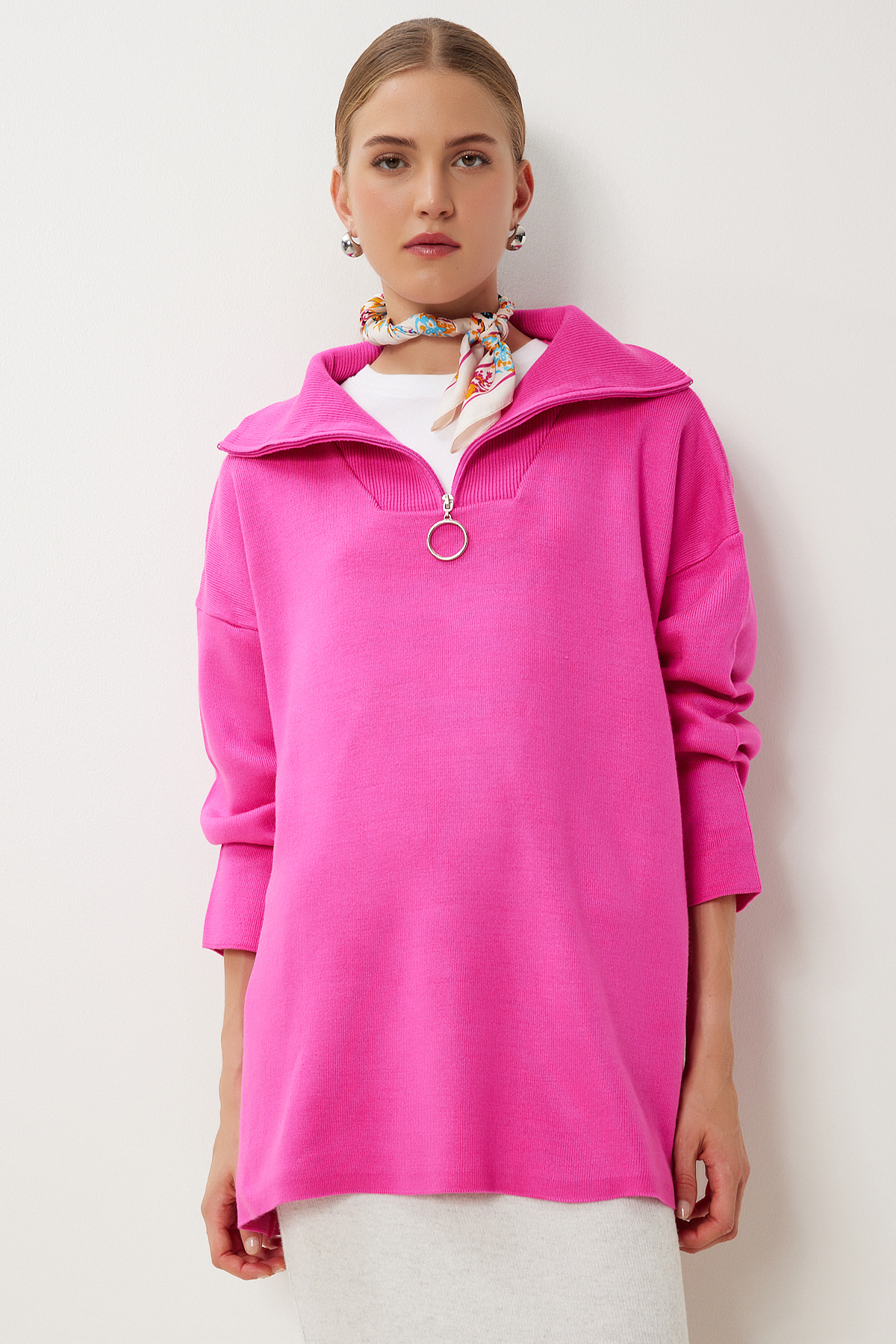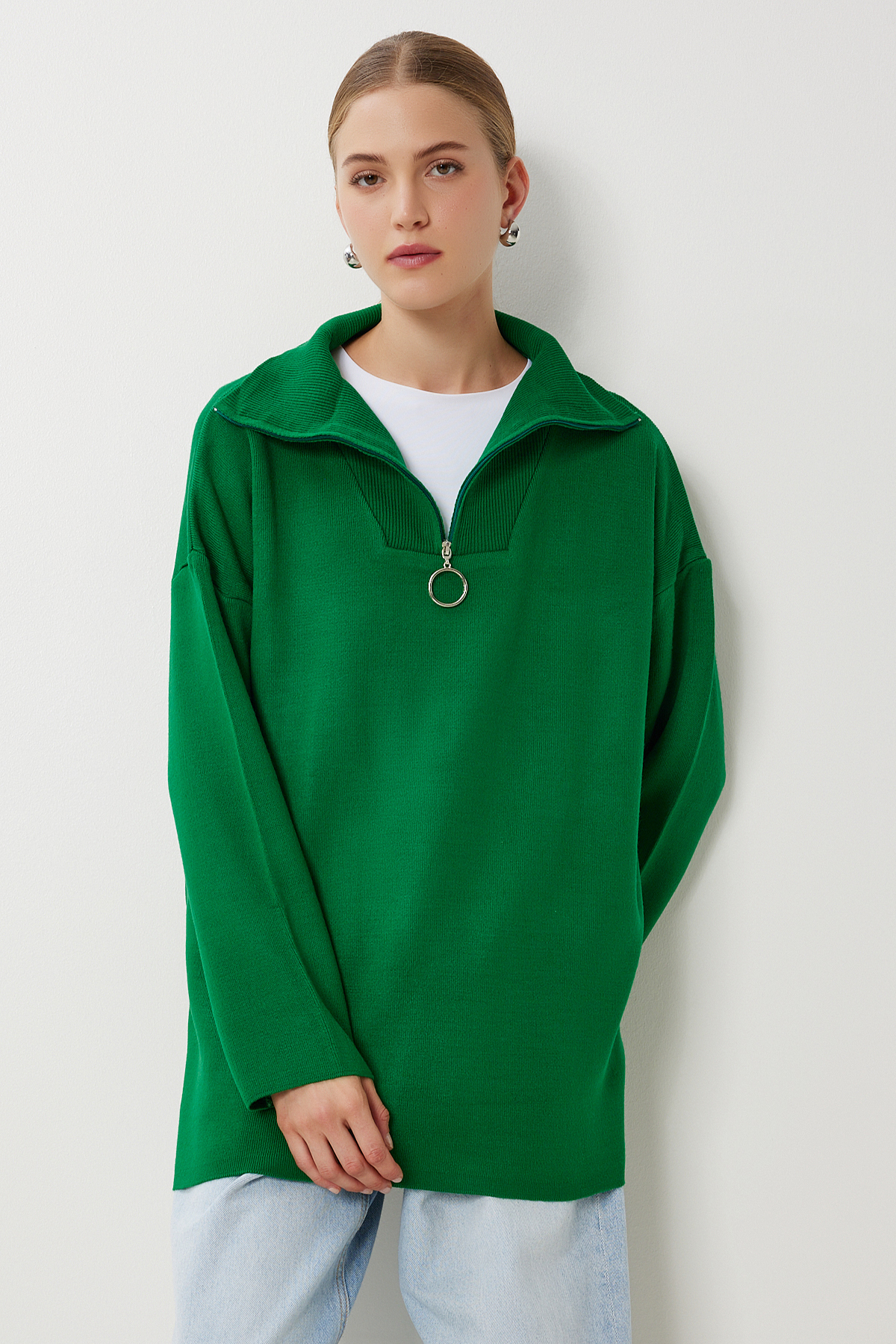 Kadın Koyu Mavi Fermuarlı Oversize Triko Kazak YY00263 Kadın Koyu Mavi Fermuarlı Oversize Triko Kazak YY00263 تک سایز