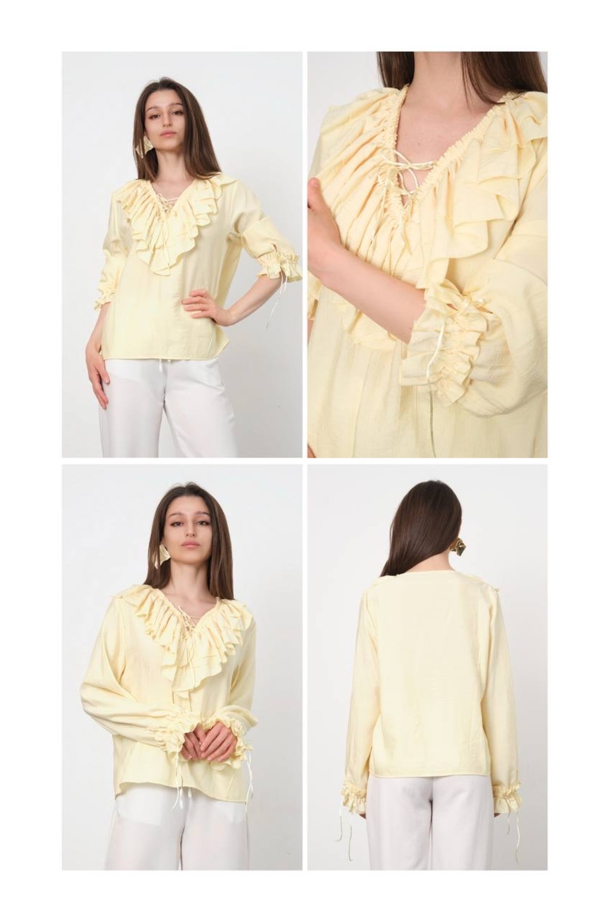 Sarı Fırfır Detaylı Bağlamaşı Gömlek Bluz Sarı Fırfır Detaylı Bağlamaşı Gömlek Bluz bffsf1 40
