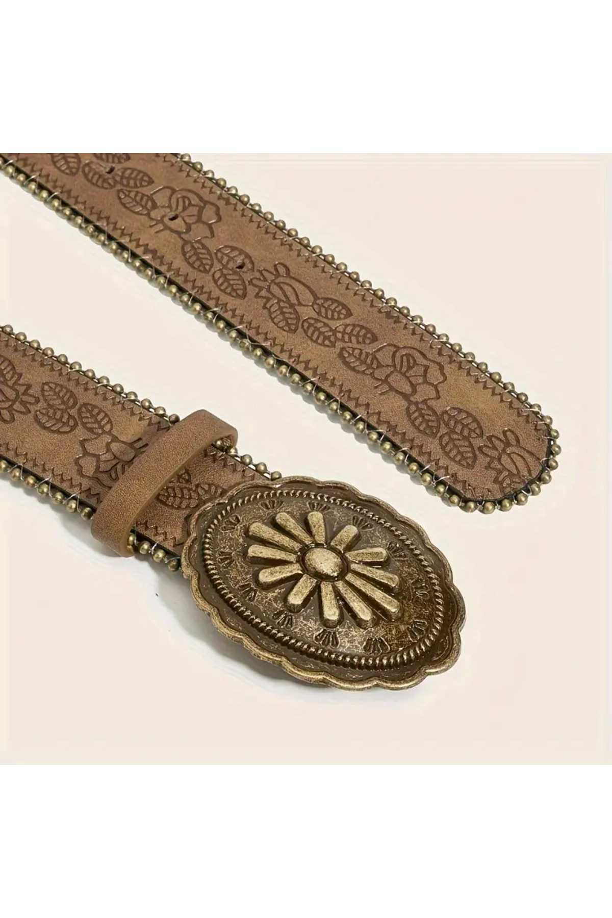 Unisex otantik suni deri bej çiçek baskılı altın çiçekli akrep taşlı kovboy tokalı kemer Unisex otantik suni deri bej çiçek baskılı altın çiçekli akrep taşlı kovboy tokalı kemer 5576531 125 CM