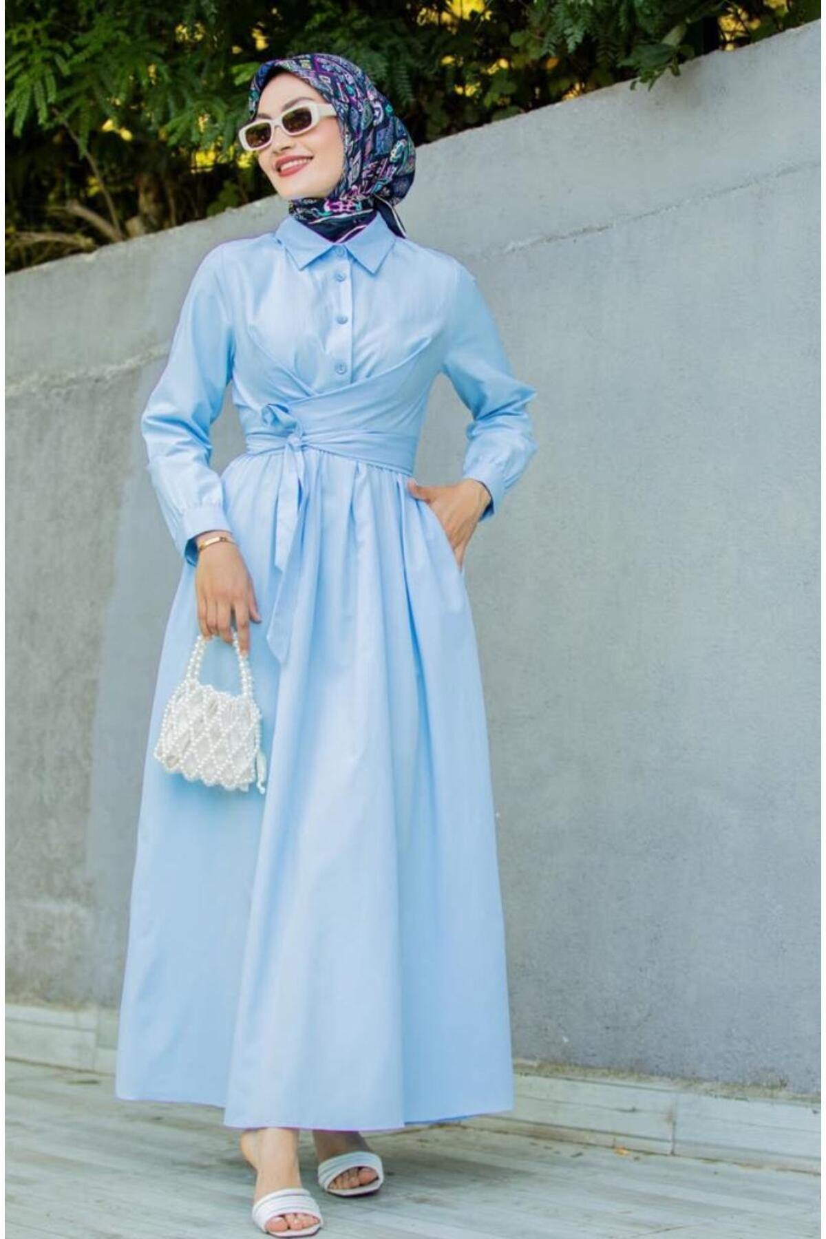 YARIM PAT DÜĞMELİ BAĞLAMALI ELBİSE YARIM PAT DÜĞMELİ BAĞLAMALI ELBİSE ST000004 44