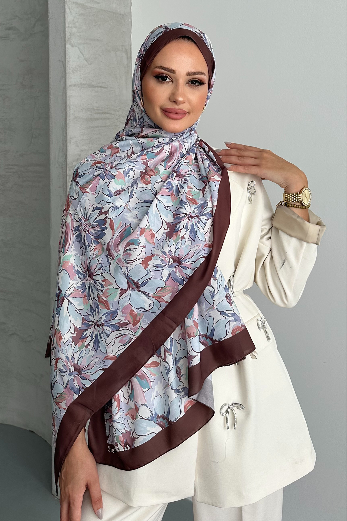Lotus Çiçek Desen Kahverengi Soft Pamuk Şal Lotus Çiçek Desen Kahverengi Soft Pamuk Şal Lotus01 75 x 190