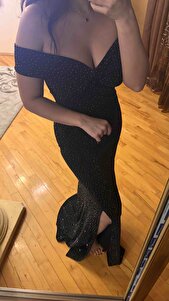 Yırtmaçlı Taşlı Flowers Elbise Siyah Gümüş 583305 Yırtmaçlı Taşlı Flowers Elbise Siyah Gümüş 583305 XL