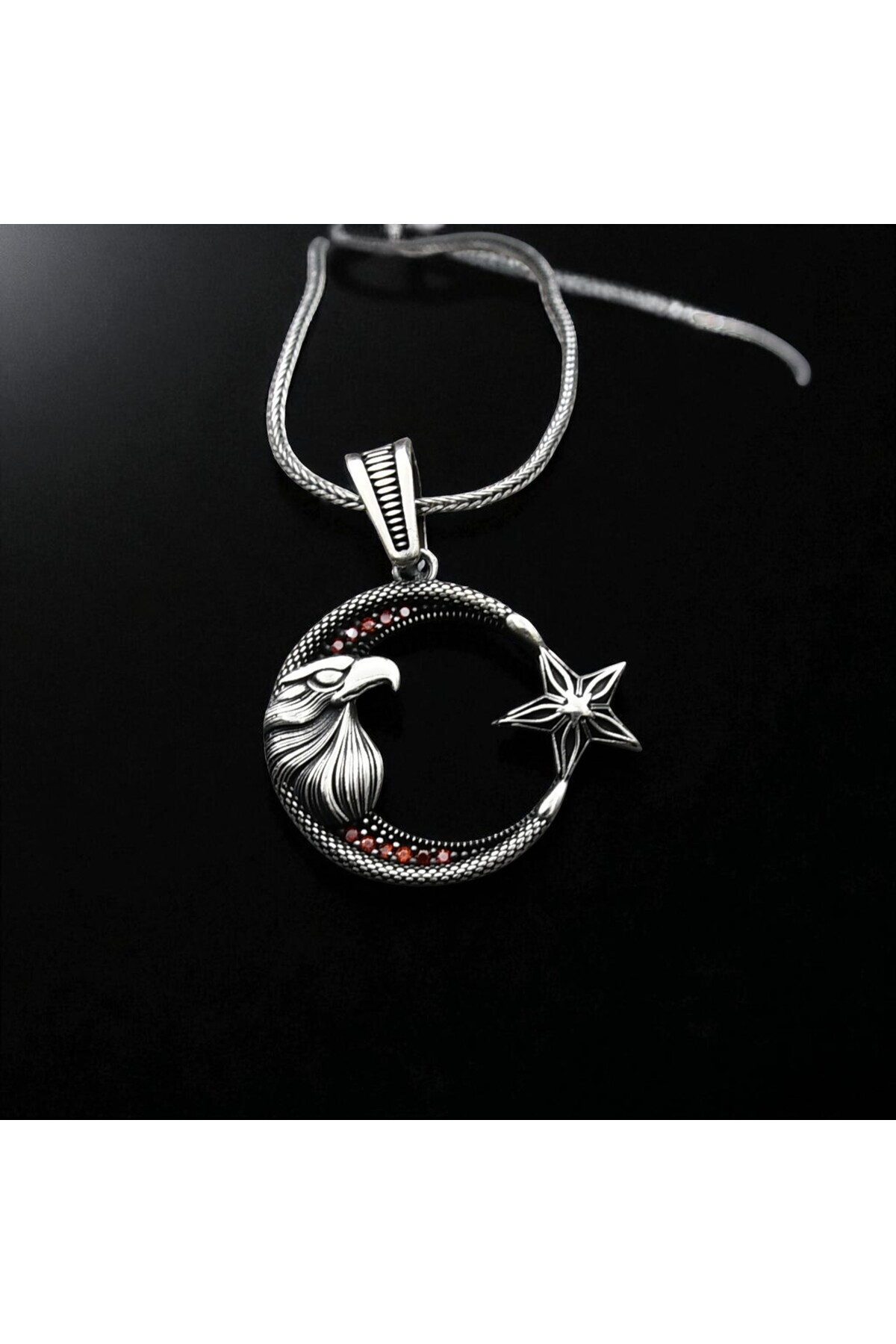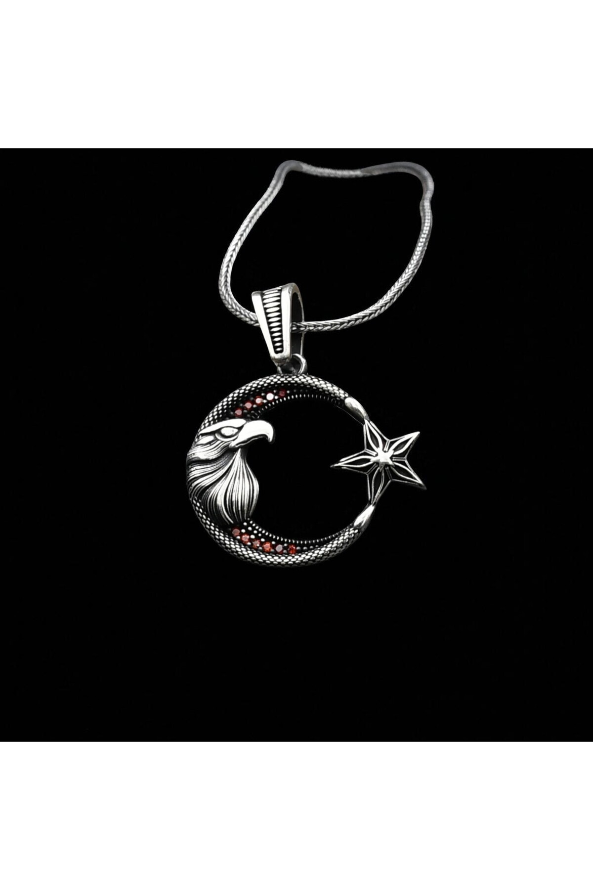Ay Yıldızlı ve Kartal Figürlü Gümüş Erkek Kolye Ay Yıldızlı ve Kartal Figürlü Gümüş Erkek Kolye AST-5784 70 cm