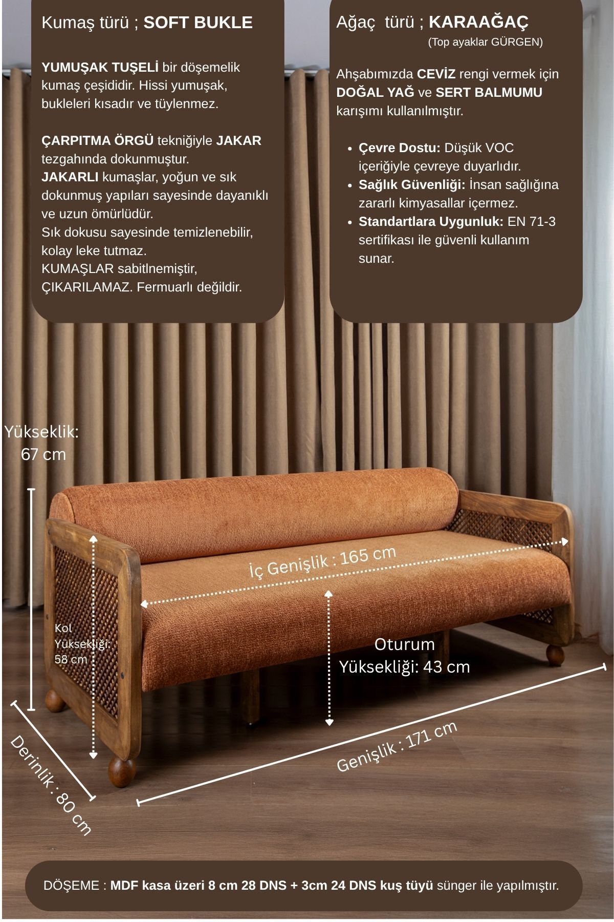 ANİTA Ahşap Hazeranlı Bukle Kumaş Üçlü Koltuk ANİTA Ahşap Hazeranlı Bukle Kumaş Üçlü Koltuk Anita3 تک سایز