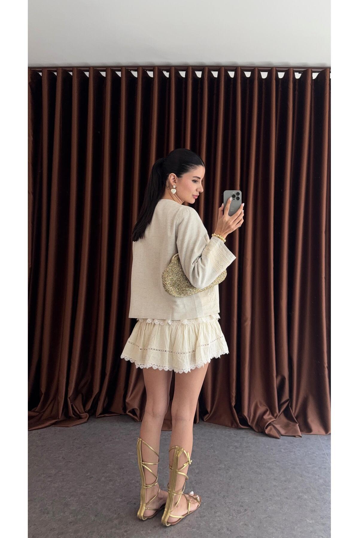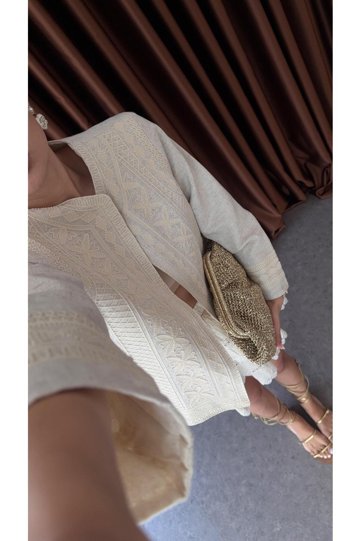 Nakışlı Keten Ceket Nakışlı Keten Ceket 11805 L