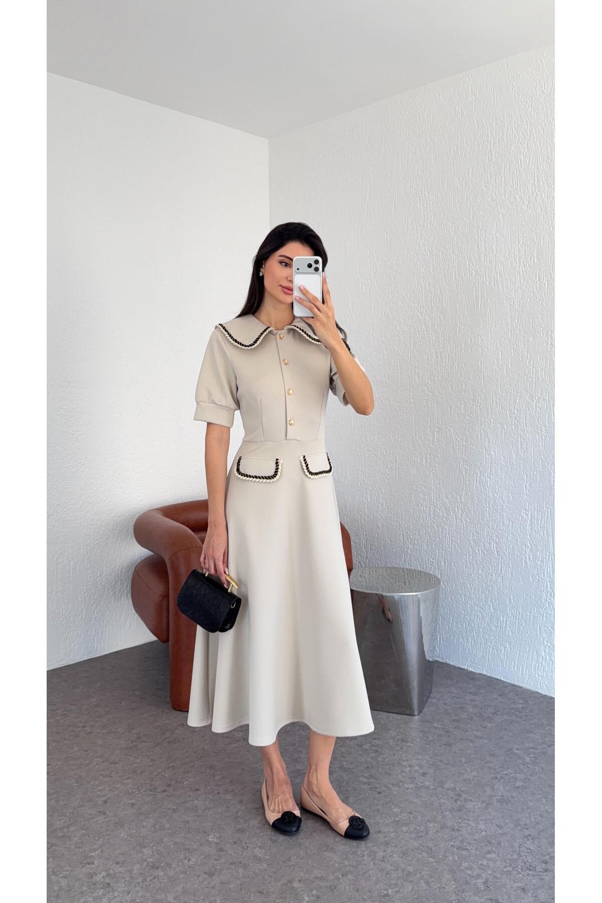 Nakışlı Keten Elbise Nakışlı Keten Elbise 11807 XL