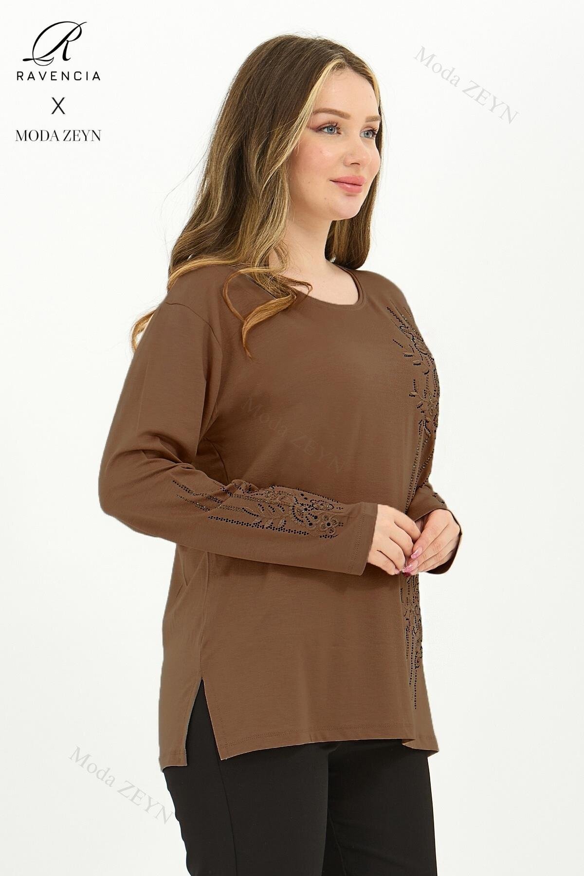 Kadın Orta Yaş Ve Üzeri Viskon Şerit Desen Taşlı Işlemeli Likralı Koyu Kahverengi Anne Penye Bluz Kadın Orta Yaş Ve Üzeri Viskon Şerit Desen Taşlı Işlemeli Likralı Koyu Kahverengi Anne Penye Bluz MZ005S 5XL
