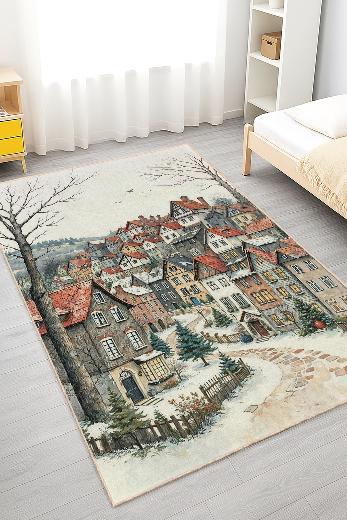 Kış Temalı Dijital Baskılı Yılbaşı Halısı Kaymaz Taban Yıkanabilir Dikdörtgen Salon Halısı Kış Temalı Dijital Baskılı Yılbaşı Halısı Kaymaz Taban Yıkanabilir Dikdörtgen Salon Halısı eko-comfort-dikhali-16156 160 x 230
