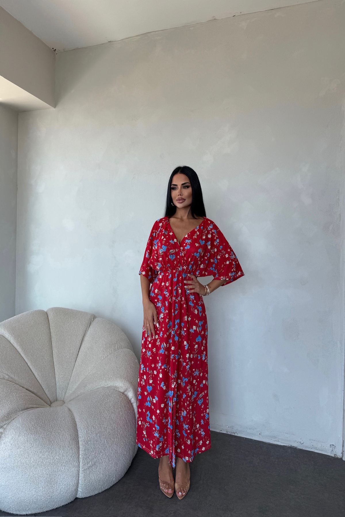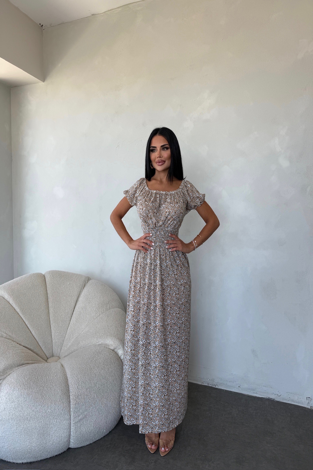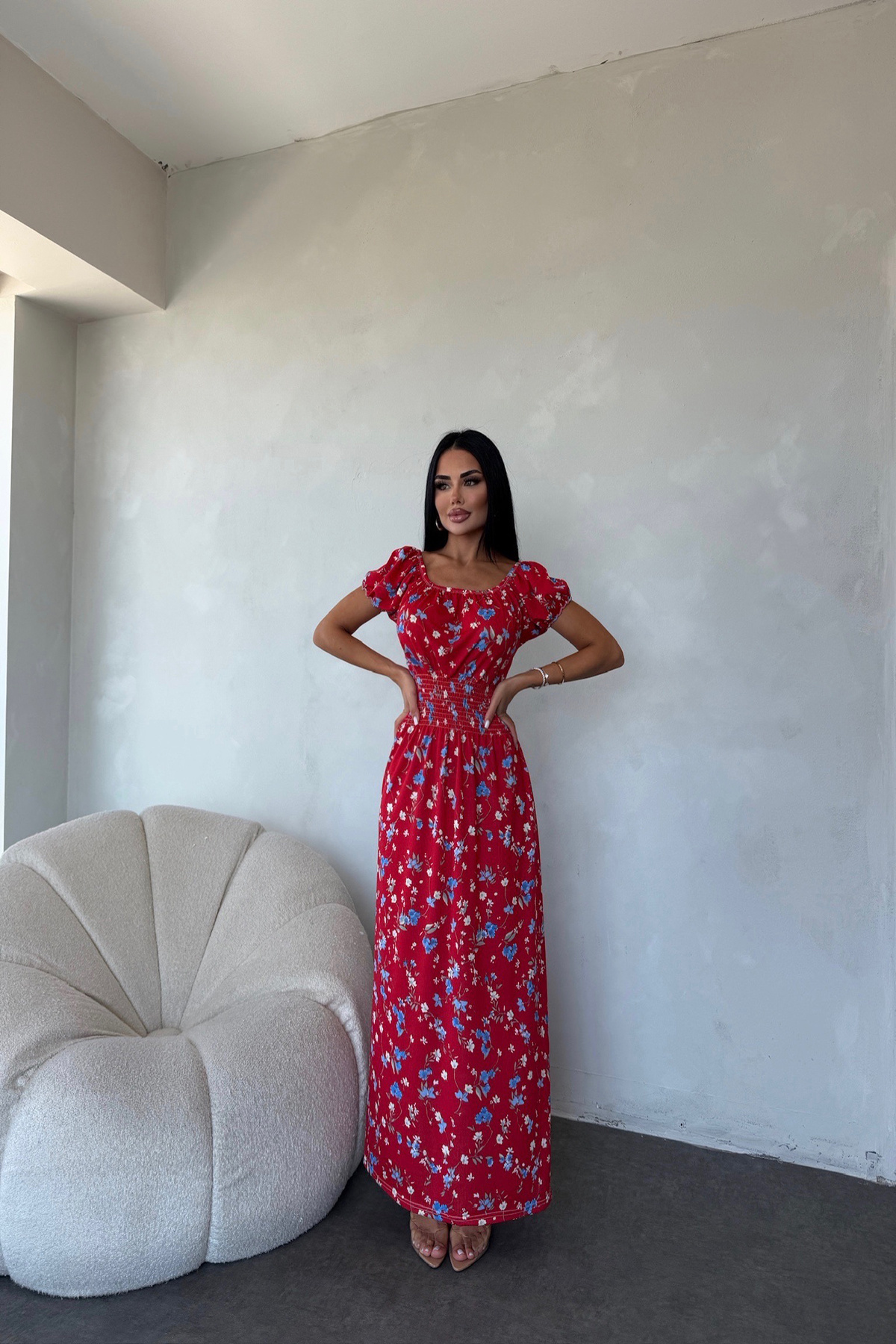 OMUZ BÜZGÜLÜ ÇİÇEKLİ ELBİSE OMUZ BÜZGÜLÜ ÇİÇEKLİ ELBİSE K-367 XL