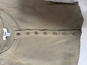 Düğme Detaylı Haki Tişört Slim Fit / Dar Kesim 1613401-71567 Düğme Detaylı Haki Tişört Slim Fit / Dar Kesim 1613401-71567 L