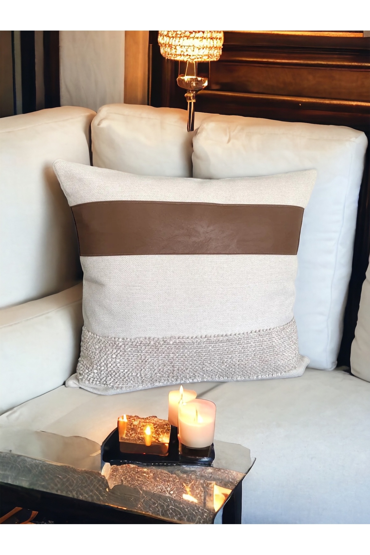 Kızıl Ekin Patchwork Deri Kırlent Kılıfı Kızıl Ekin Patchwork Deri Kırlent Kılıfı A3KE 50 x 30