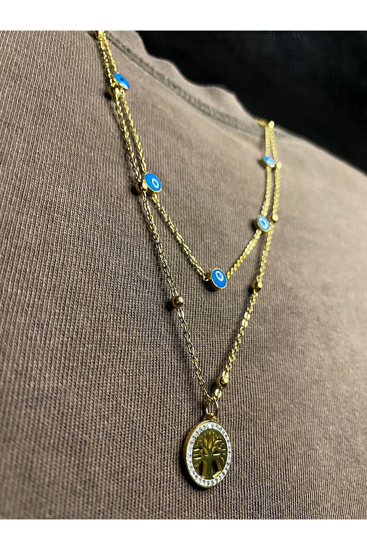 PASLANMAZ ÇELİK , NAZAR BONCUĞU VE YAŞAM AĞACI SÜSLEMELİ KOLYE PASLANMAZ ÇELİK , NAZAR BONCUĞU VE YAŞAM AĞACI SÜSLEMELİ KOLYE ÇLKKLYE0005 0