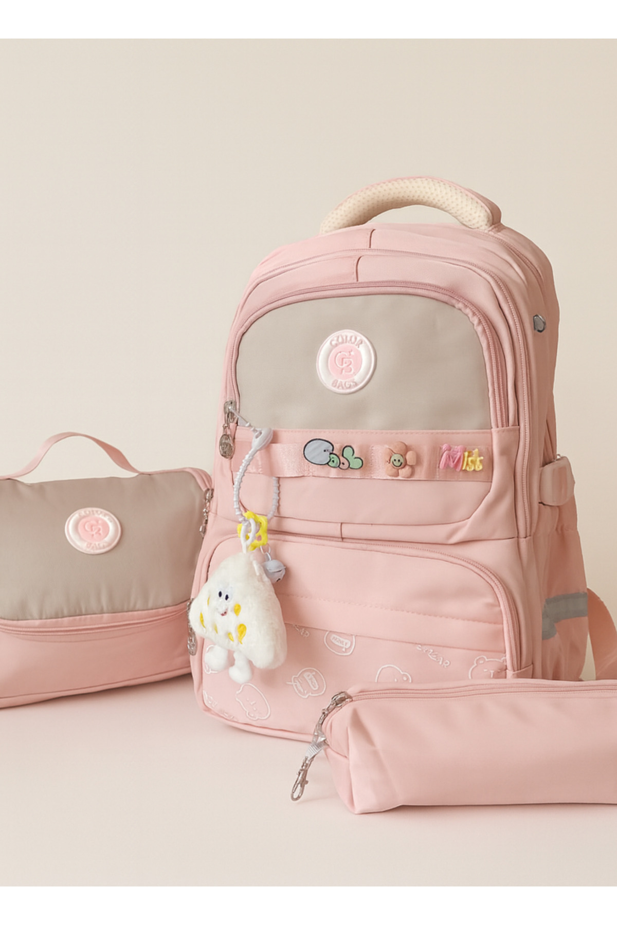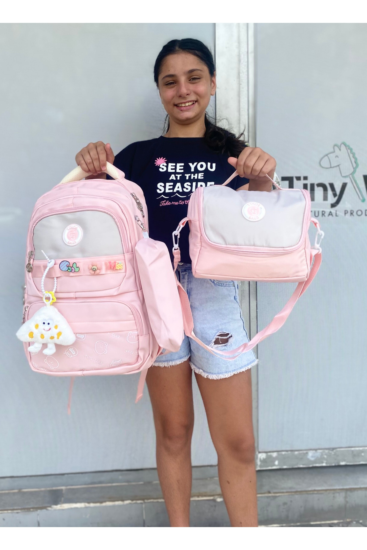 Kız Çocuk İlköğretim Çantası Ultra Hafif ilkokul / Ortaokul Okul 3 lü Çanta Seti Pembe-Lila -Gri Kız Çocuk İlköğretim Çantası Ultra Hafif ilkokul / Ortaokul Okul 3 lü Çanta Seti Pembe-Lila -Gri TinyWood1200111 تک سایز