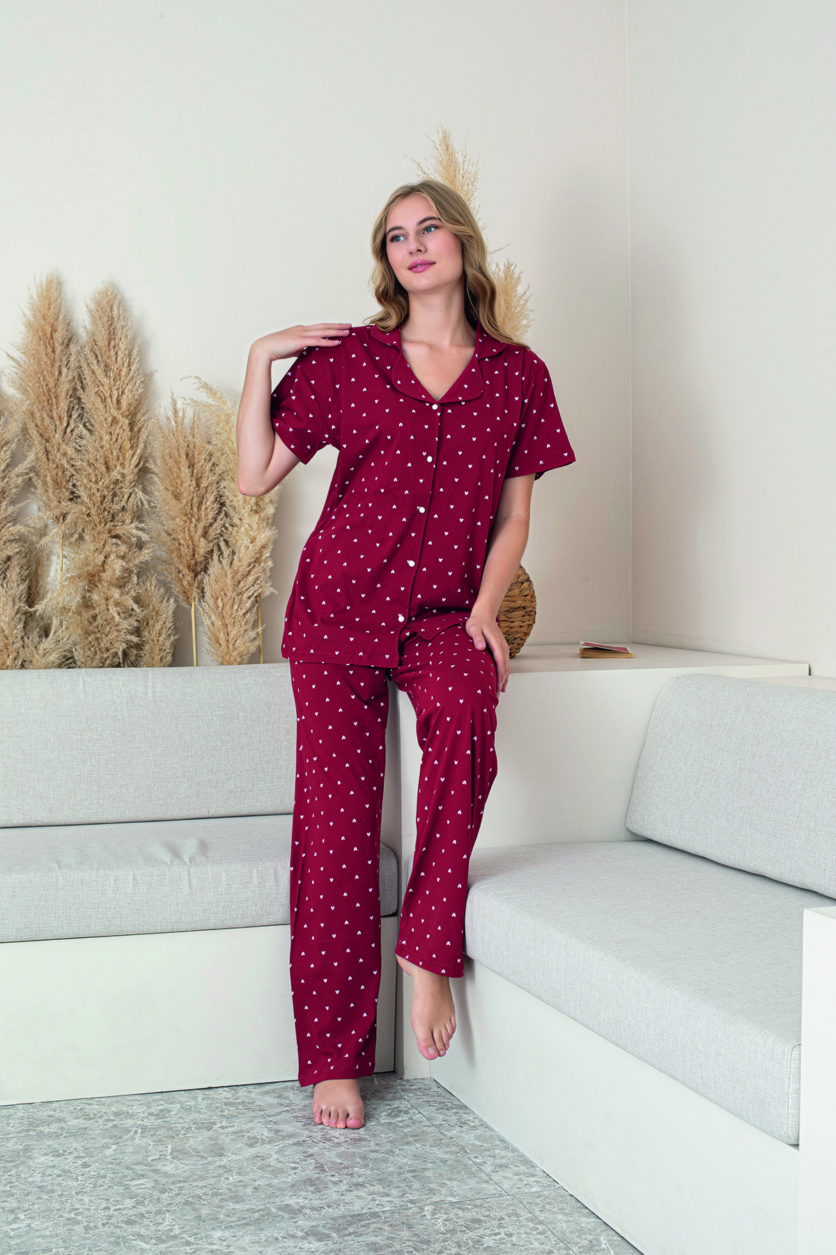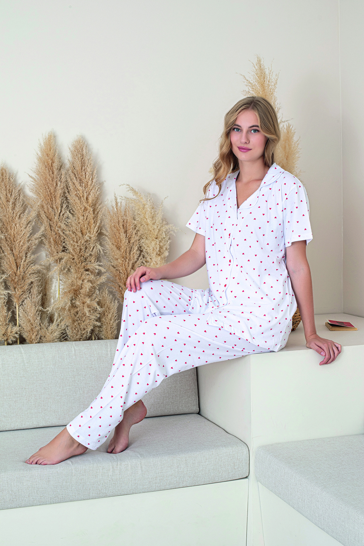 Kadın %100 Doğal Pamuk Kalpli Gömlek Yaka Kısa Kollu Kaliteli Pijama Takımı Kadın %100 Doğal Pamuk Kalpli Gömlek Yaka Kısa Kollu Kaliteli Pijama Takımı F0125Y004030 4XL