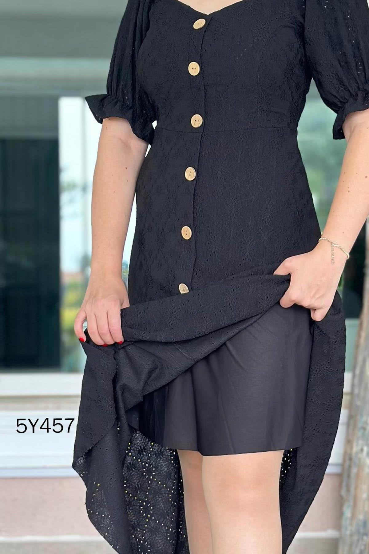 Önden Düğmeli Kısa Kollu Brode Elbise 5y457 Önden Düğmeli Kısa Kollu Brode Elbise 5y457 44