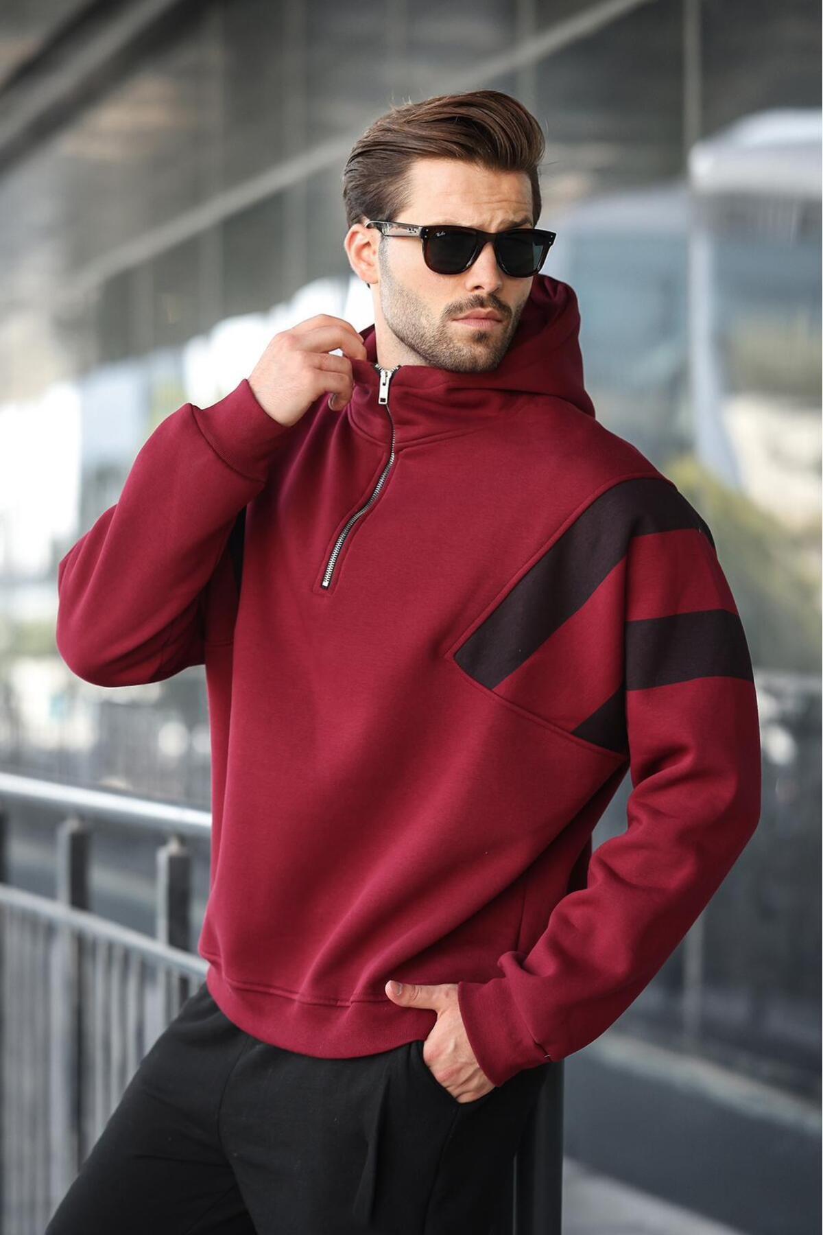 Füme Kapüşonlu Fermuar Yaka Desenli Erkek Sweatshirt E7162 Füme Kapüşonlu Fermuar Yaka Desenli Erkek Sweatshirt E7162 2XL