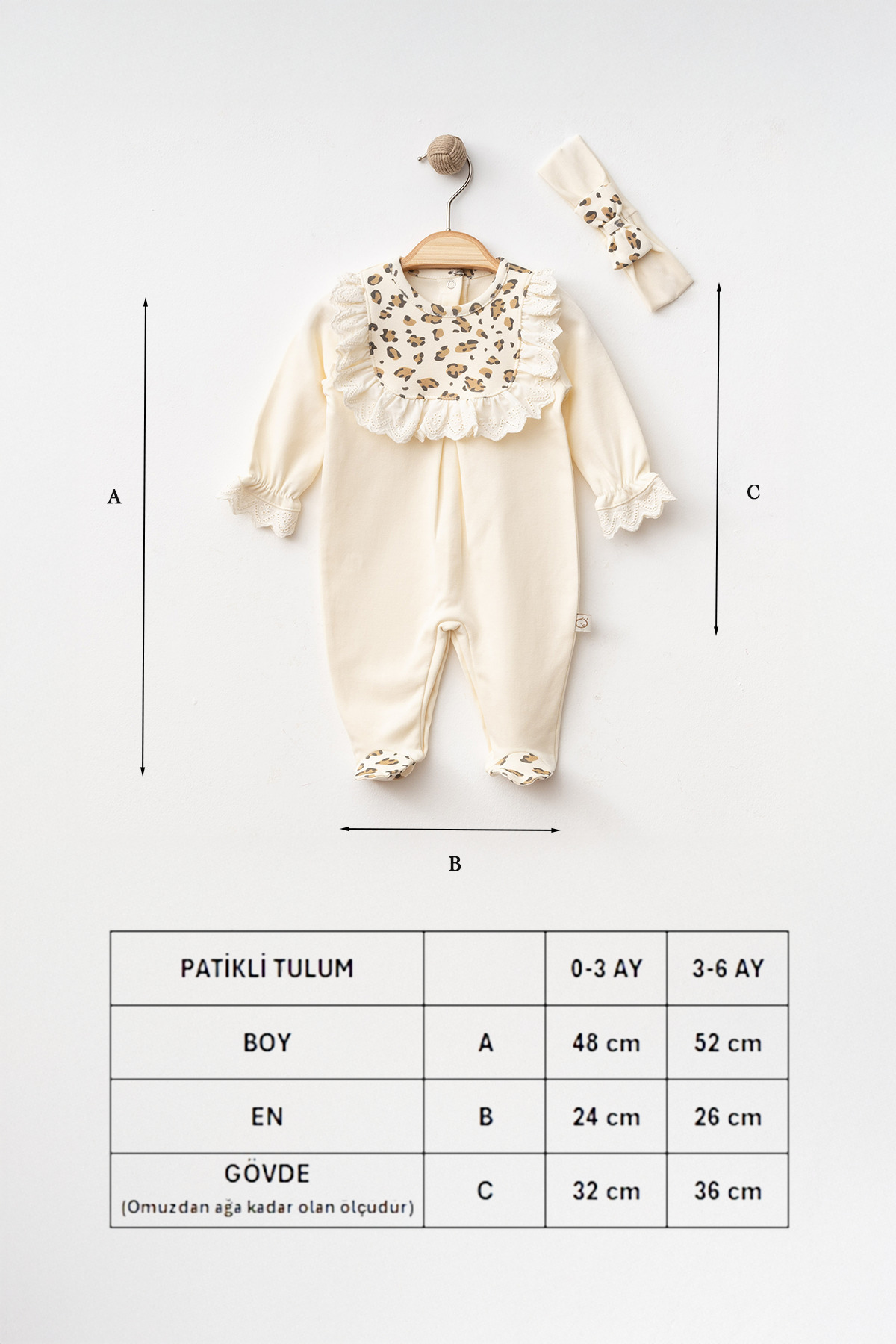 Leopar Desenli Fistolu Dantel Yakalı Kız Bebek Tulum & Saç Bandı - Bej- 0-3-6 Ay Leopar Desenli Fistolu Dantel Yakalı Kız Bebek Tulum & Saç Bandı - Bej- 0-3-6 Ay DDB-LT-OB02 3-6 AY