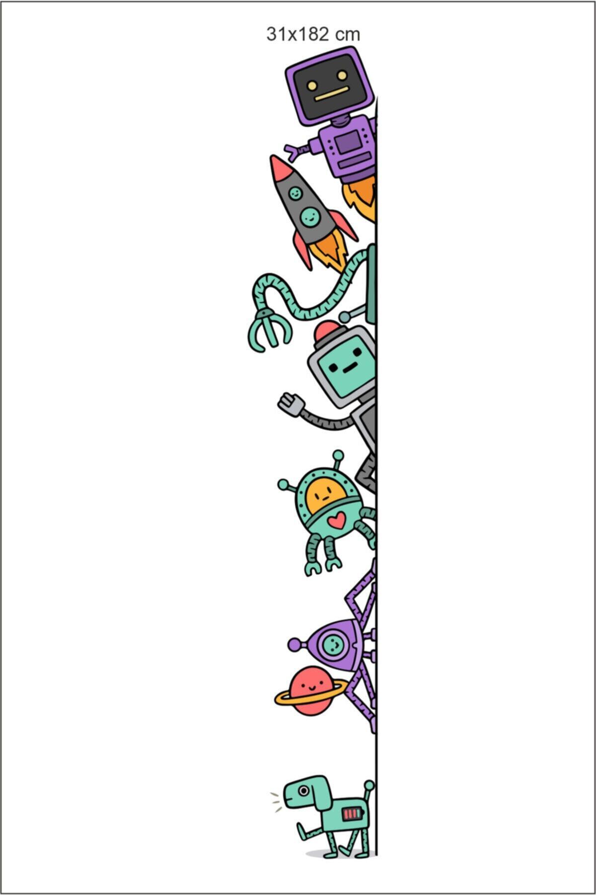 Mor robot temalı çocuk odası yapışkan duvar stickerları, kapı süsleri, aksesuarlar Mor robot temalı çocuk odası yapışkan duvar stickerları, kapı süsleri, aksesuarlar 230184065 84 x 114