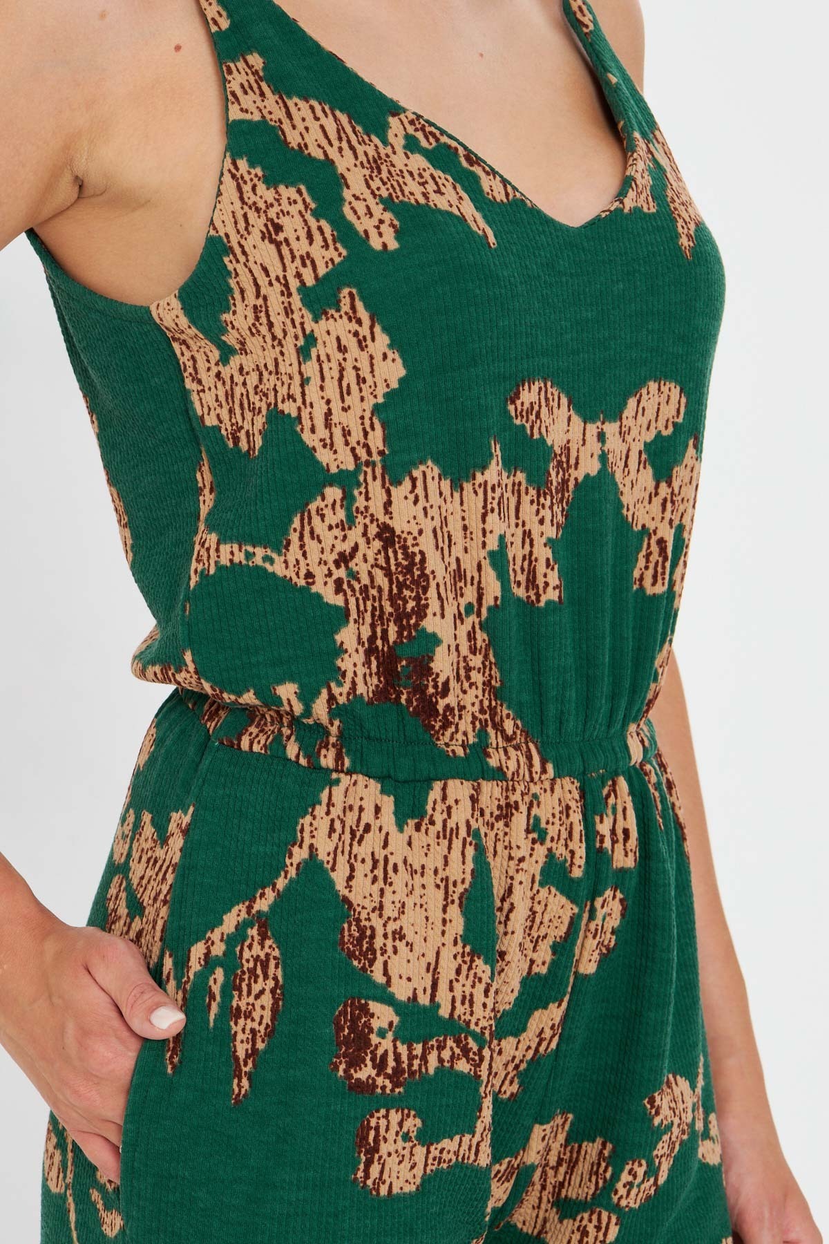 Kadın Yeşil-Bej Askılı Beli Lastikli Cepli Kısa Tulum ARM-25Y001100 Kadın Yeşil-Bej Askılı Beli Lastikli Cepli Kısa Tulum ARM-25Y001100 XL