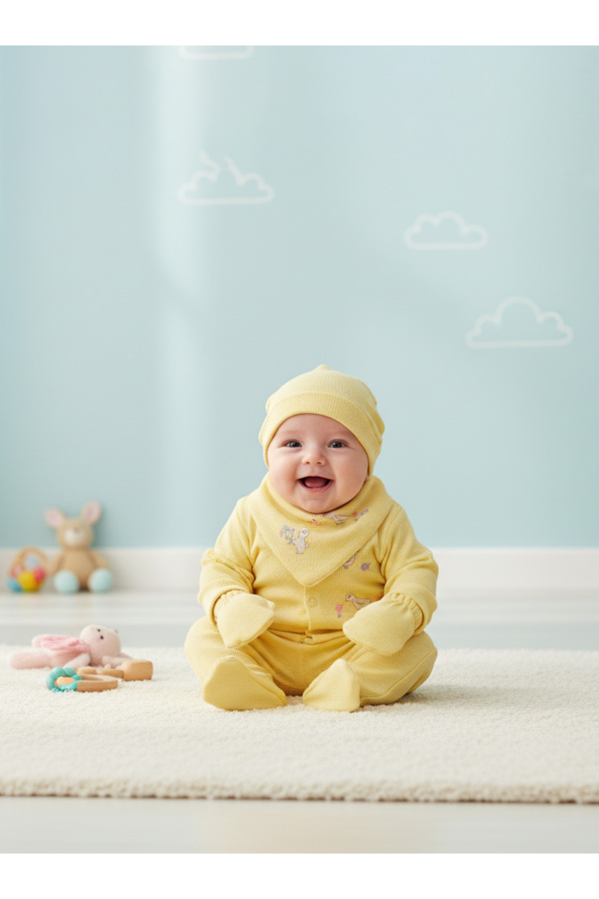 Organik Pamuk Çiçekli Civciv Desenli 5 Parça Yenidoğan Hastane Çıkışı Zıbın Seti Organik Pamuk Çiçekli Civciv Desenli 5 Parça Yenidoğan Hastane Çıkışı Zıbın Seti YMBFHC05002BK 0-3 AY