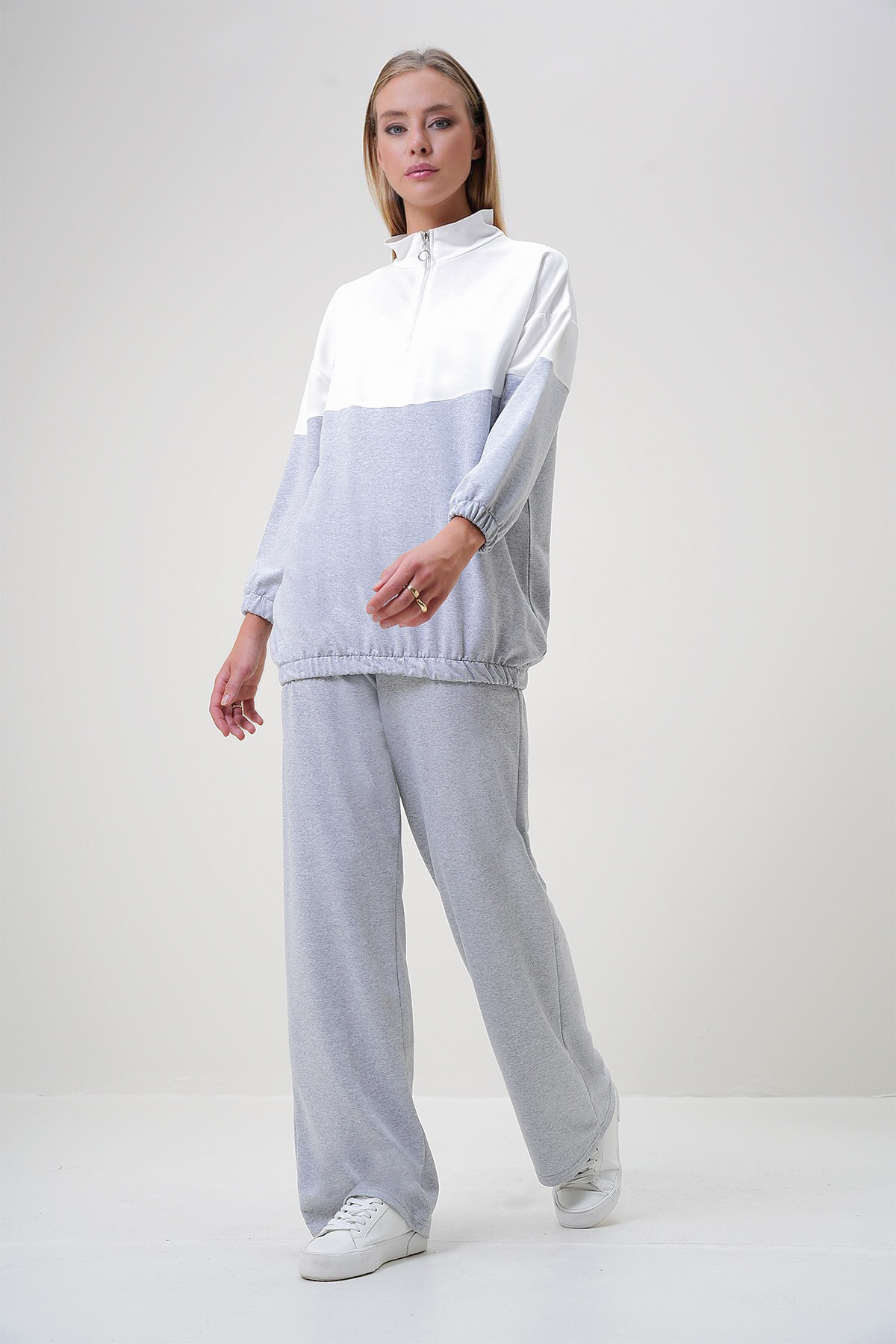 Kadın Dik Yaka Fermuarli Renk Bloklu İki İplik Alt-Üst Takim Gök Mavi ALC-X12887 Kadın Dik Yaka Fermuarli Renk Bloklu İki İplik Alt-Üst Takim Gök Mavi ALC-X12887 XL