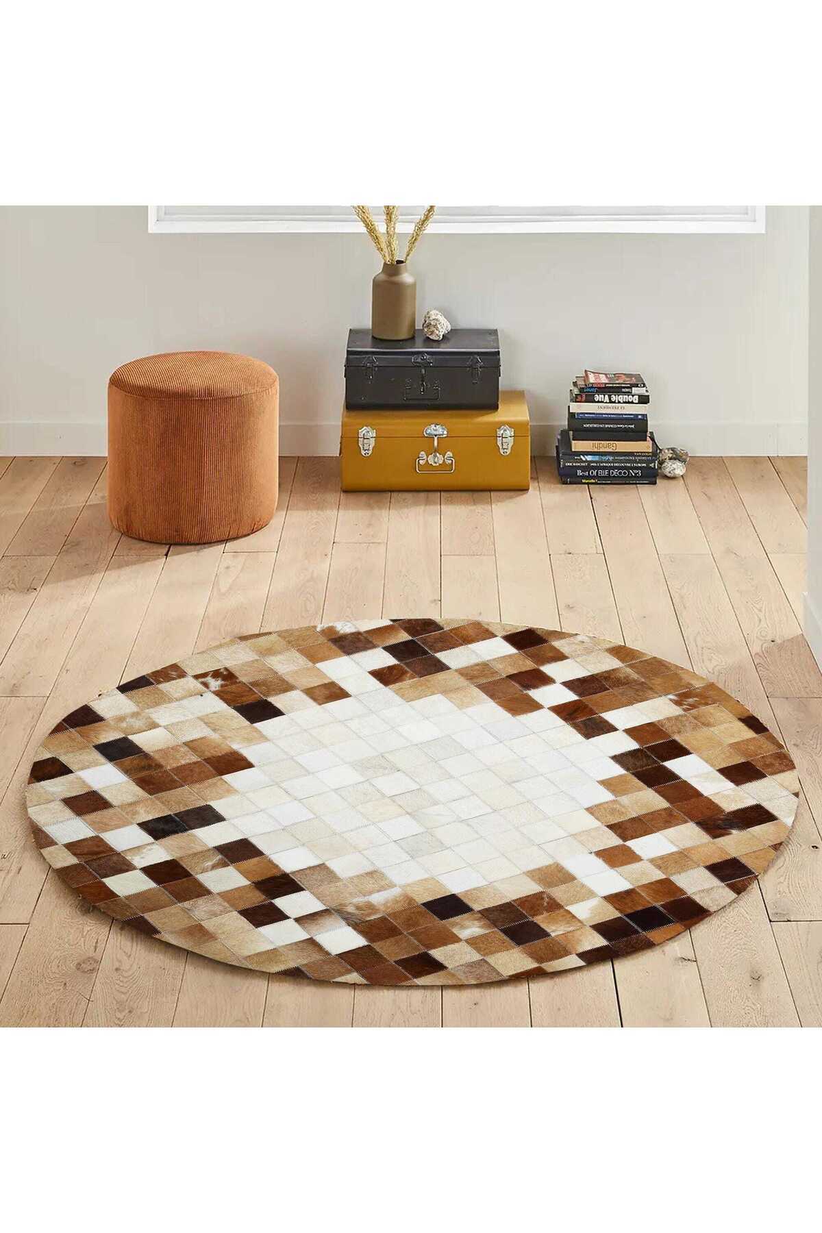 Doğal Kahverengi Krem Yuvarlak Dana Derisi Halı, Doğal Deri El Yapımı Halı Doğal Kahverengi Krem Yuvarlak Dana Derisi Halı, Doğal Deri El Yapımı Halı 8965850890475 200 x 200