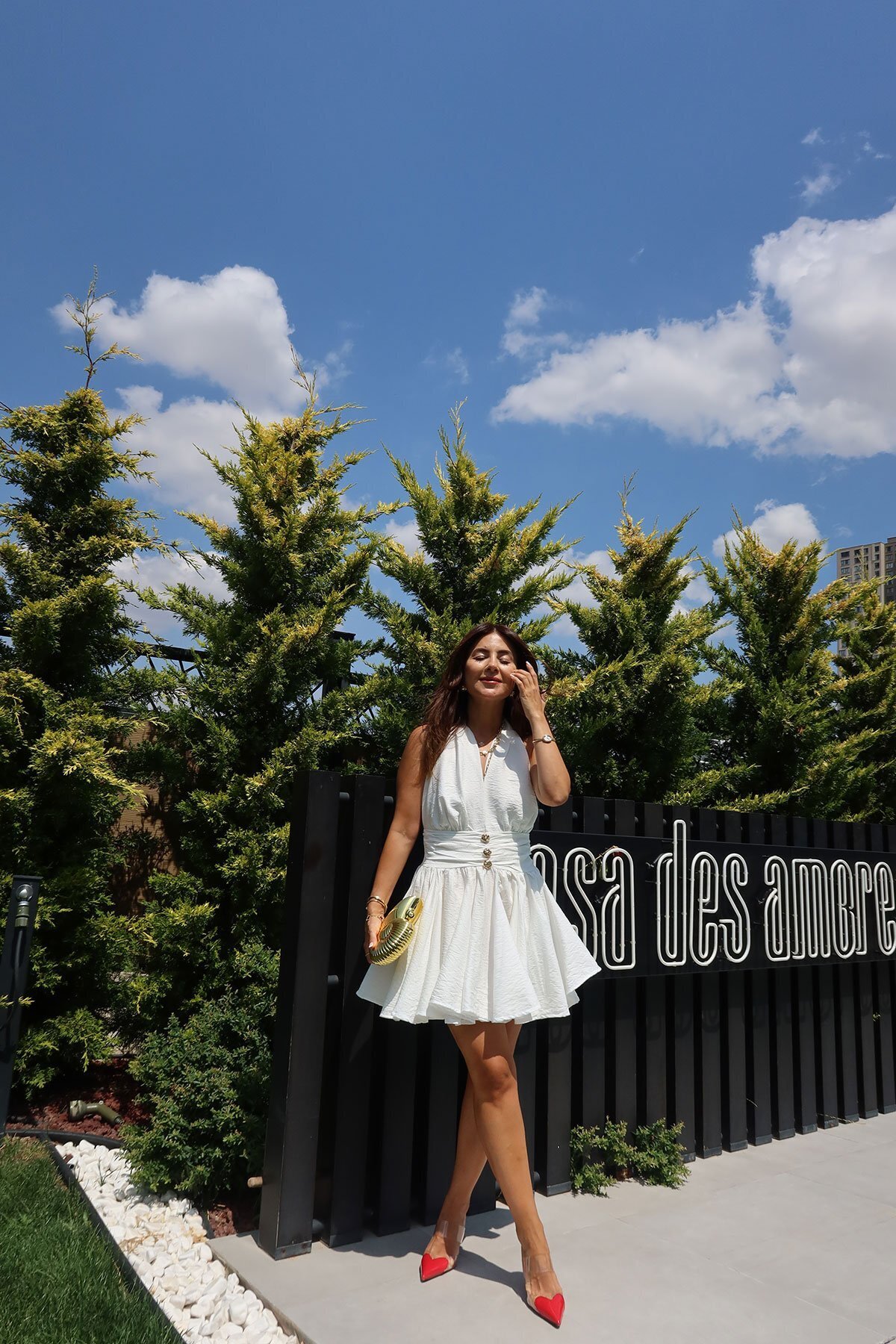 Boyundan Bağlamalı Mini Elbise Boyundan Bağlamalı Mini Elbise EH-5833 L