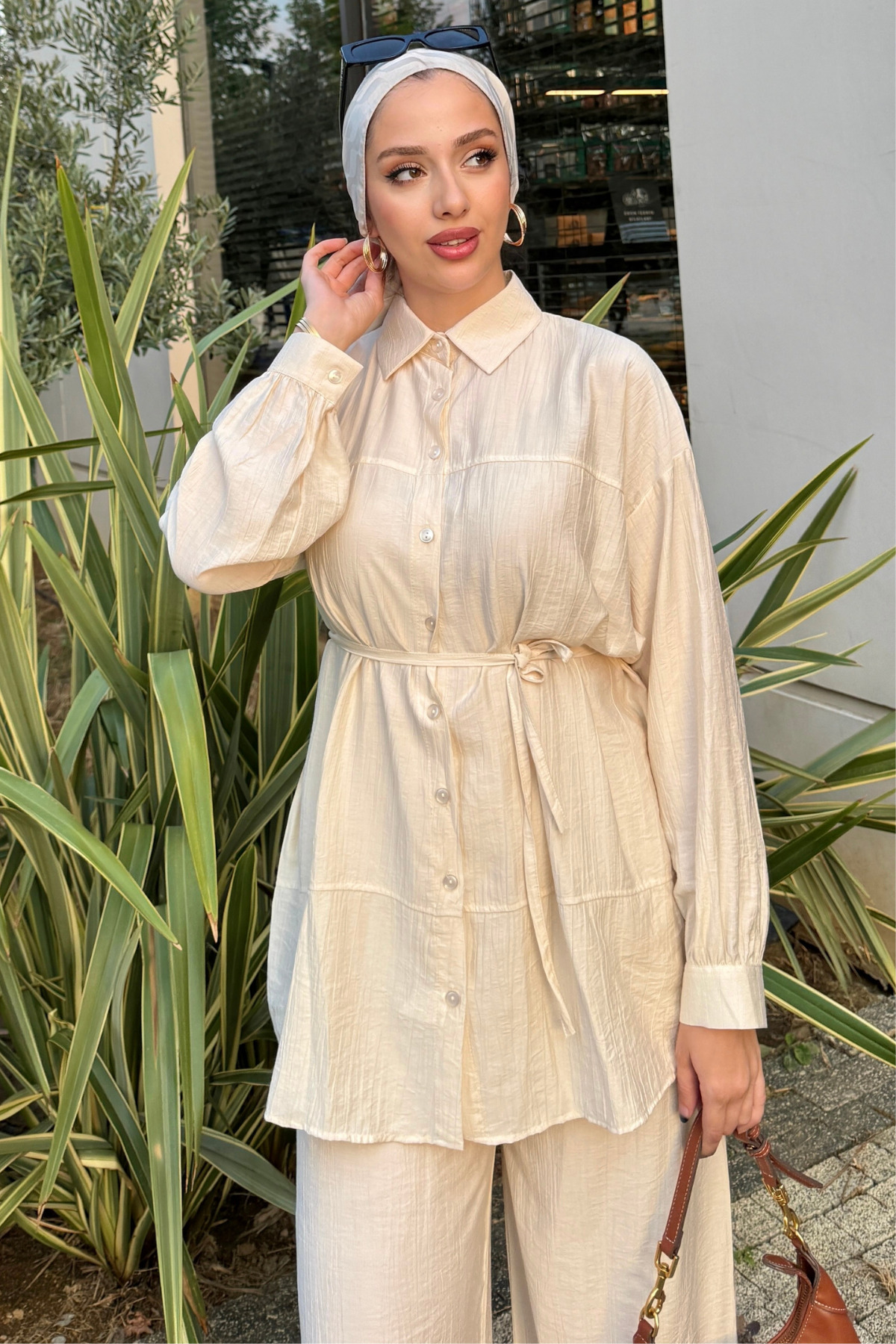 Renha Yazlık Tesettür Takım- Krem Renha Yazlık Tesettür Takım- Krem TD154 46