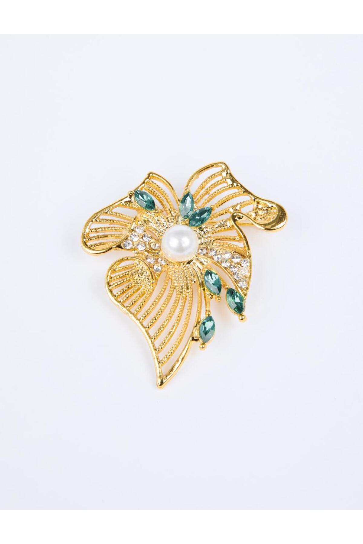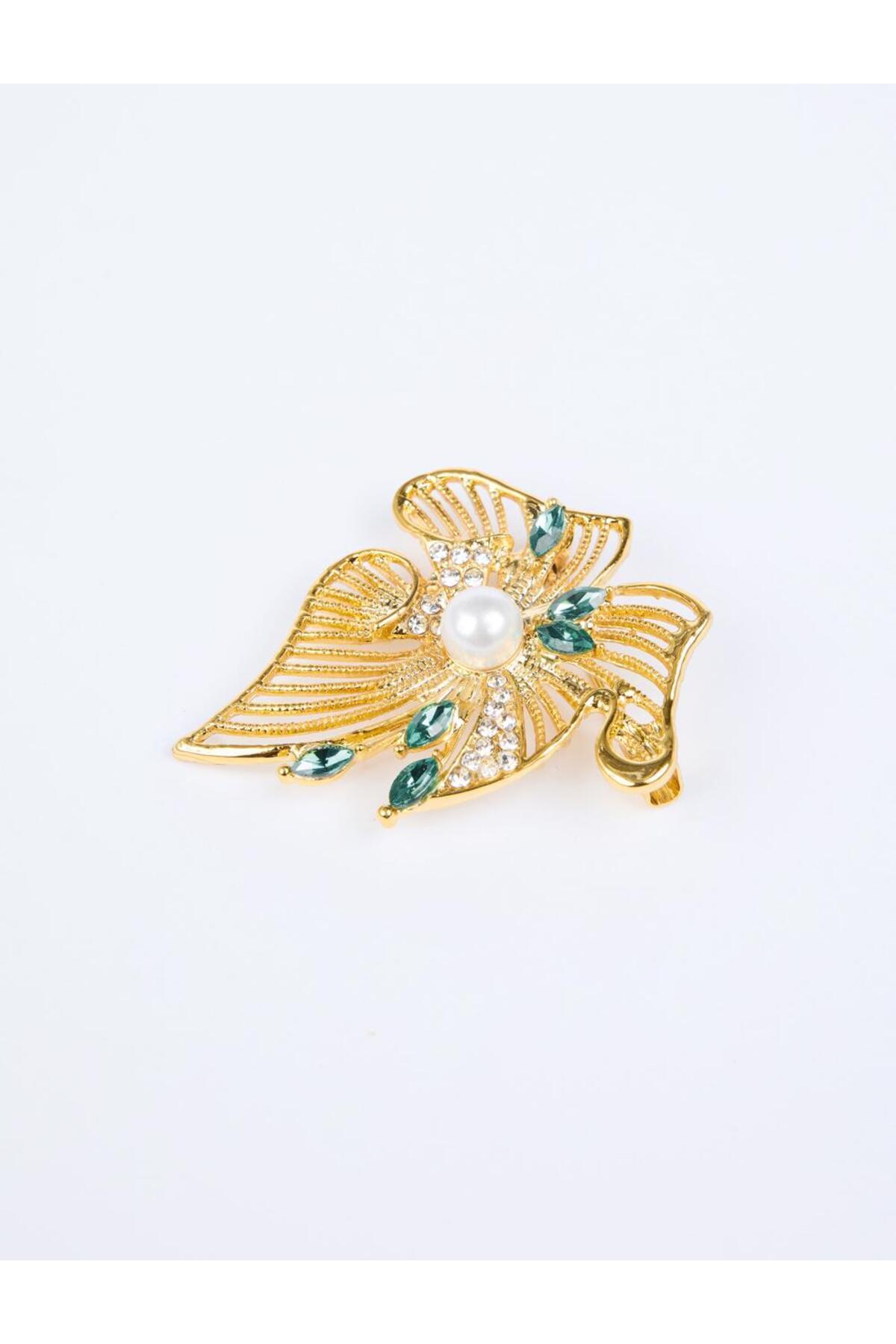 Altın Rengi Yaprak Figürlü Top İnci Detaylı Broş Altın Rengi Yaprak Figürlü Top İnci Detaylı Broş 5WW355480 تک سایز