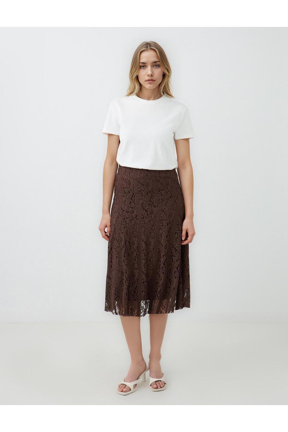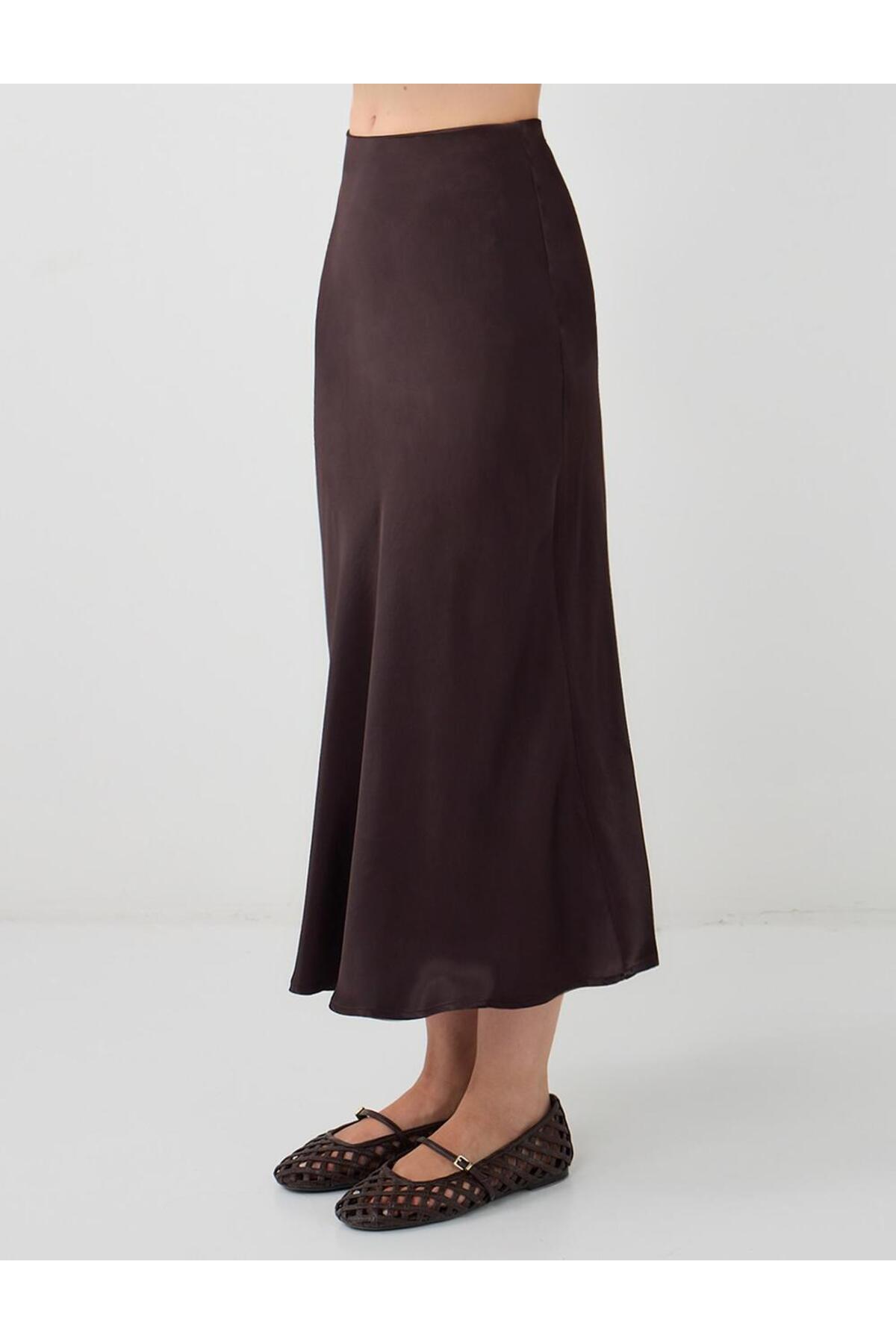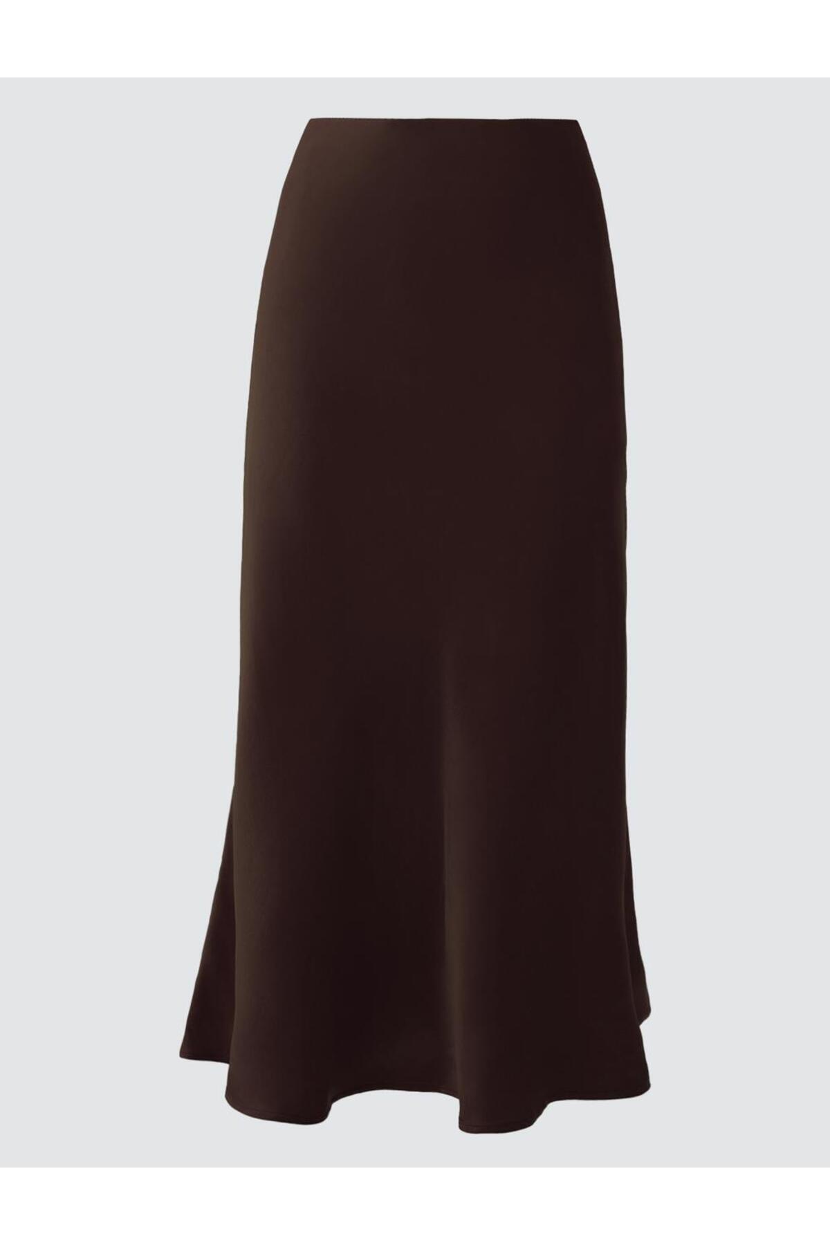 Kahverengi Normal Bel Dar Kesim Uzun Saten Etek Kahverengi Normal Bel Dar Kesim Uzun Saten Etek 5WW075105 XL