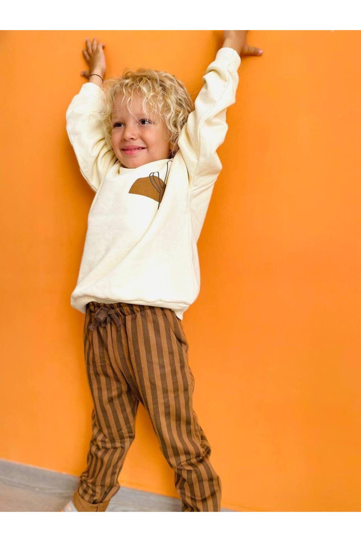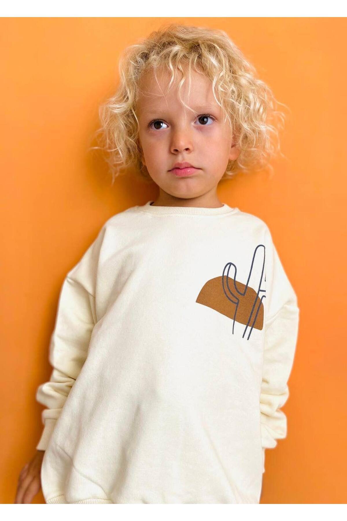 Erkek Çocuk Pamuklu Ekru Kaktüs Baskılı Sweatshirt ve Kahverengi Çizgili Pantolon Takım Erkek Çocuk Pamuklu Ekru Kaktüs Baskılı Sweatshirt ve Kahverengi Çizgili Pantolon Takım Mg26Winter60 6-7 Yaş
