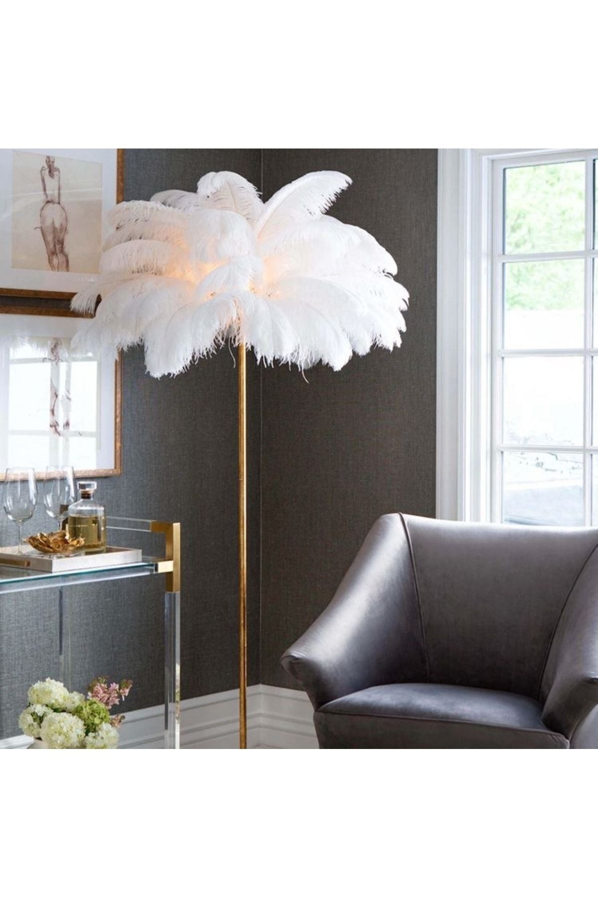 KUŞ TÜYLÜ, ŞIK, MODERN, TRİPOD AYAKLI LAMBADER ROZE KUŞ TÜYLÜ, ŞIK, MODERN, TRİPOD AYAKLI LAMBADER ROZE lmbdr تک سایز