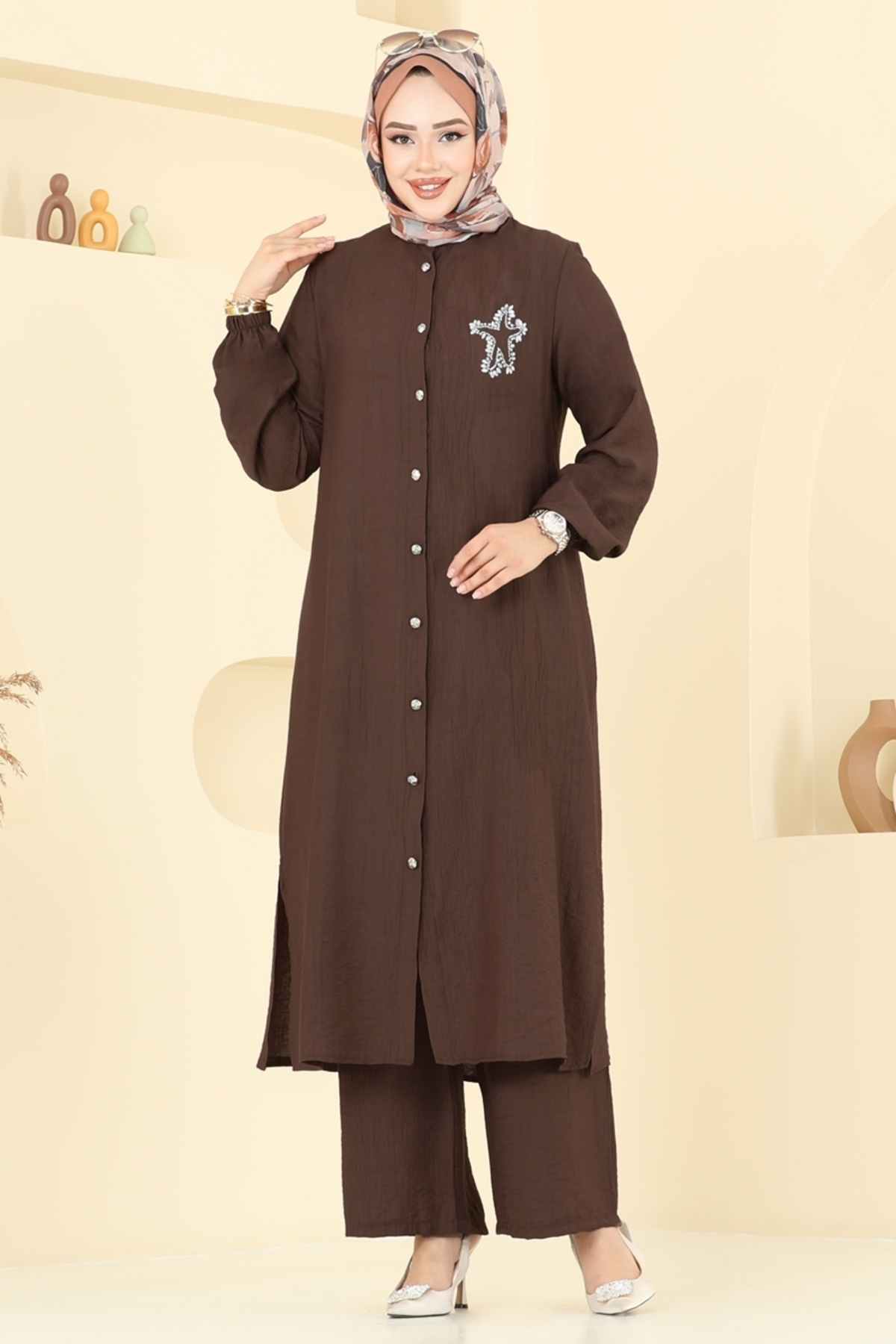 Yıldız Detaylı Tesettür Takım 449DVL817-MS Kahve Yıldız Detaylı Tesettür Takım 449DVL817-MS Kahve 52