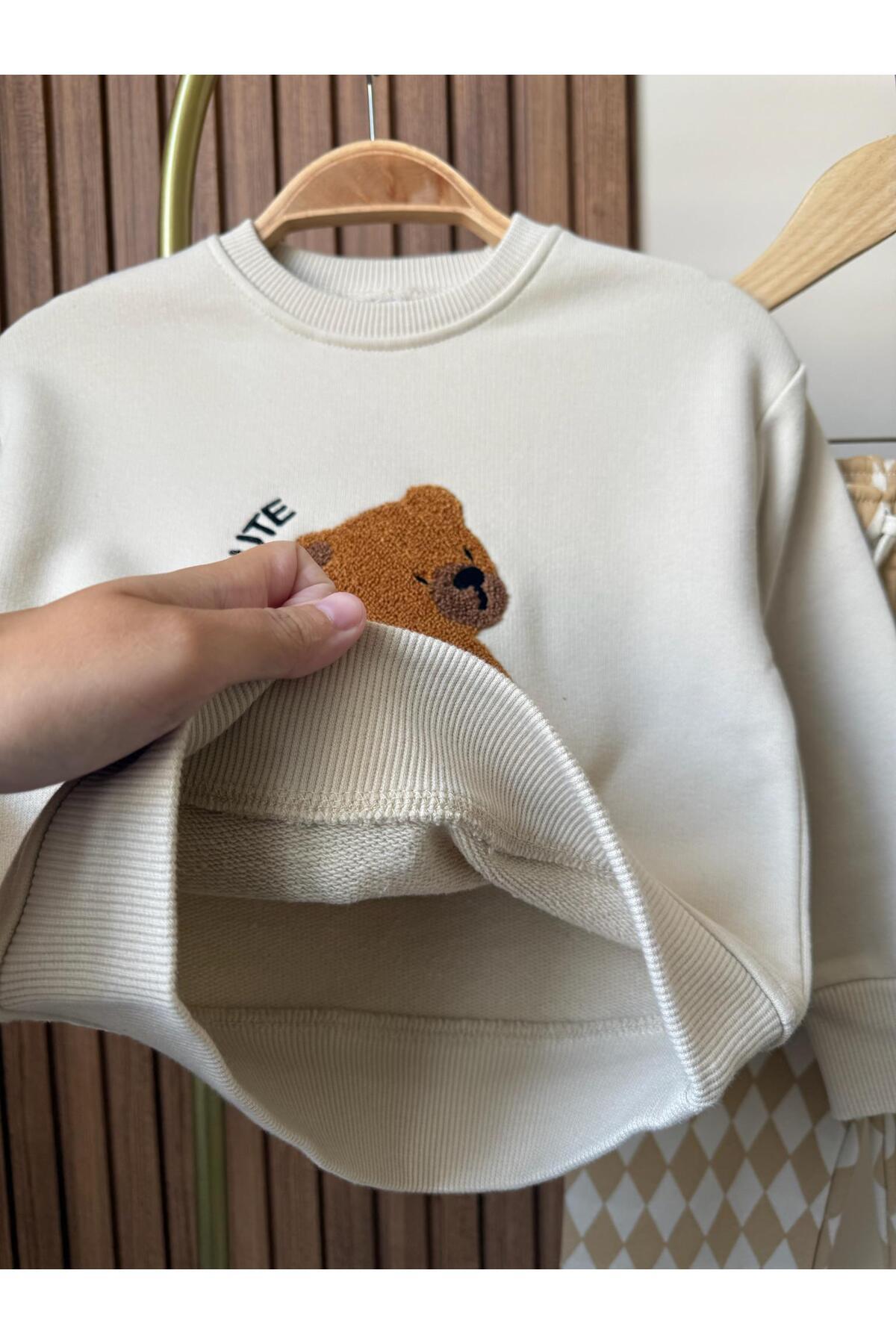 Erkek Çocuk Pamuklu Ekru Pelüş Ayıcık Baskılı Sweatshirt ve Desenli Pantolon Takım Erkek Çocuk Pamuklu Ekru Pelüş Ayıcık Baskılı Sweatshirt ve Desenli Pantolon Takım Mg26Winter62 7-8 Yaş