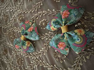 Çiçek Desenli Kurdele Fiyonk Toka 1 Çift Çiçek Desenli Kurdele Fiyonk Toka 1 Çift تک سایز