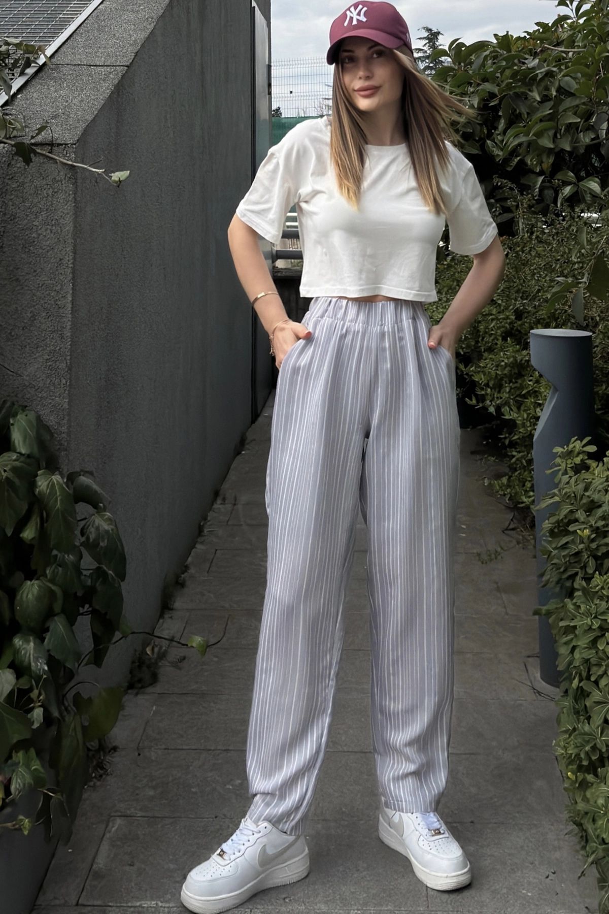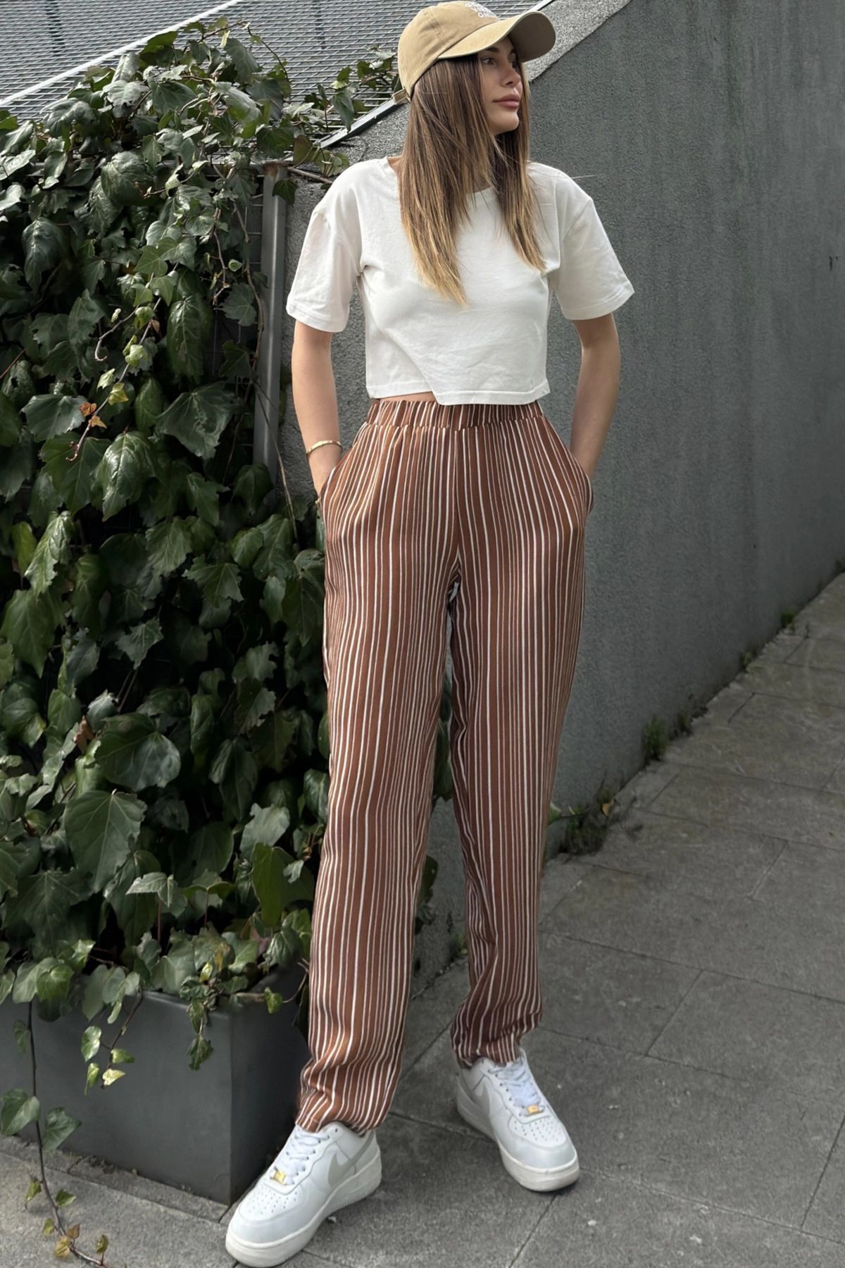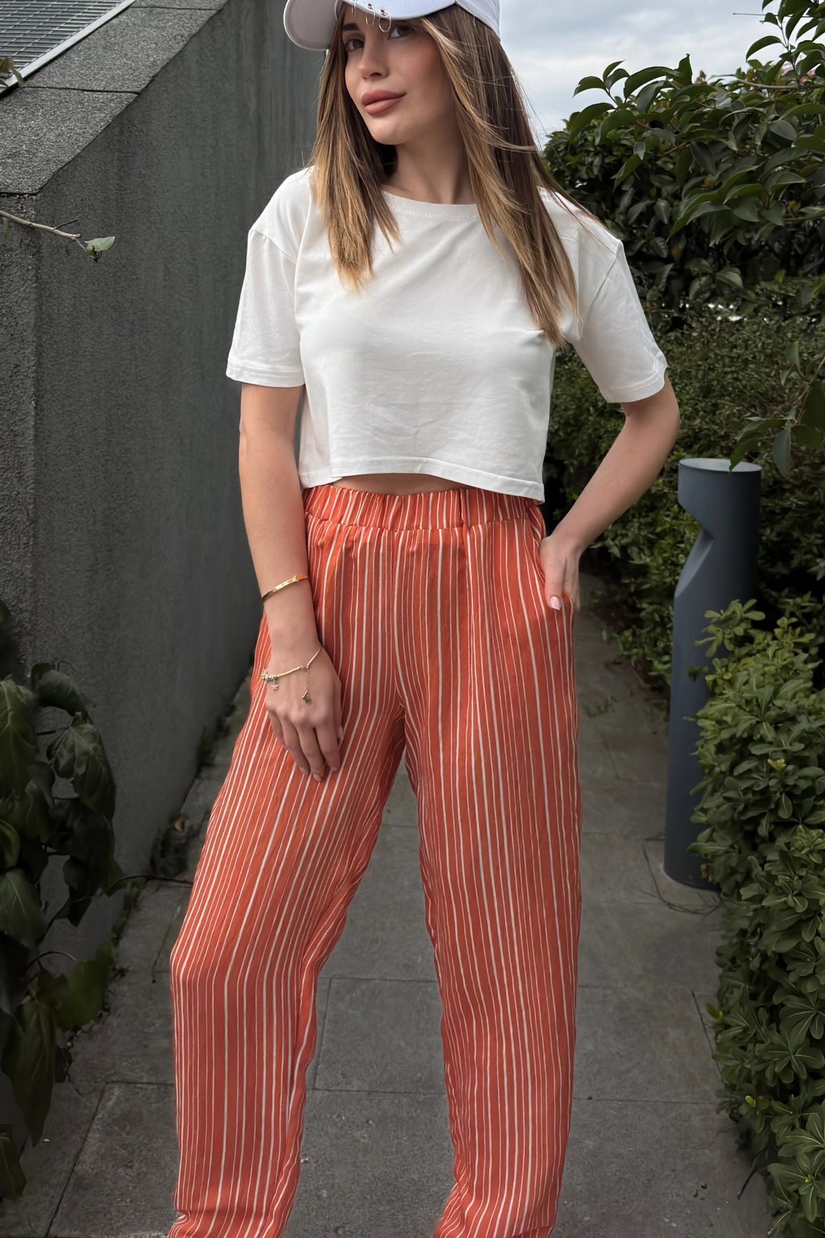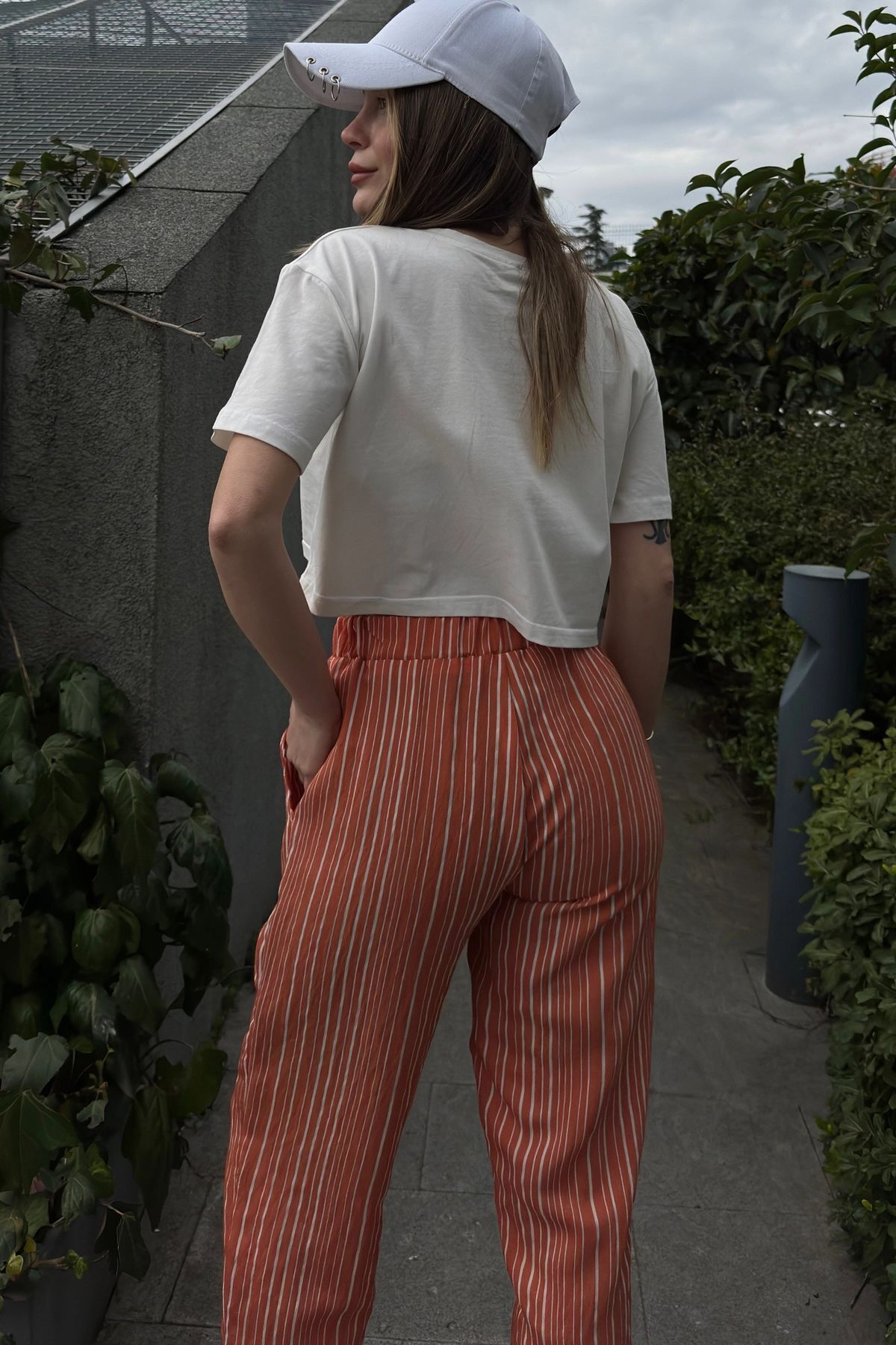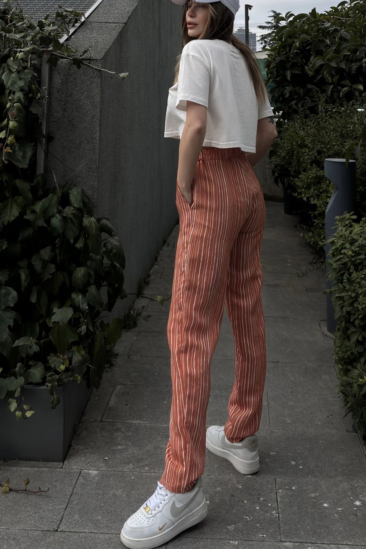 Kadın Kiremit Çizgili, Beli Lastikli, Cepli, Salaş Spor Pantolon Kadın Kiremit Çizgili, Beli Lastikli, Cepli, Salaş Spor Pantolon NY3277 42