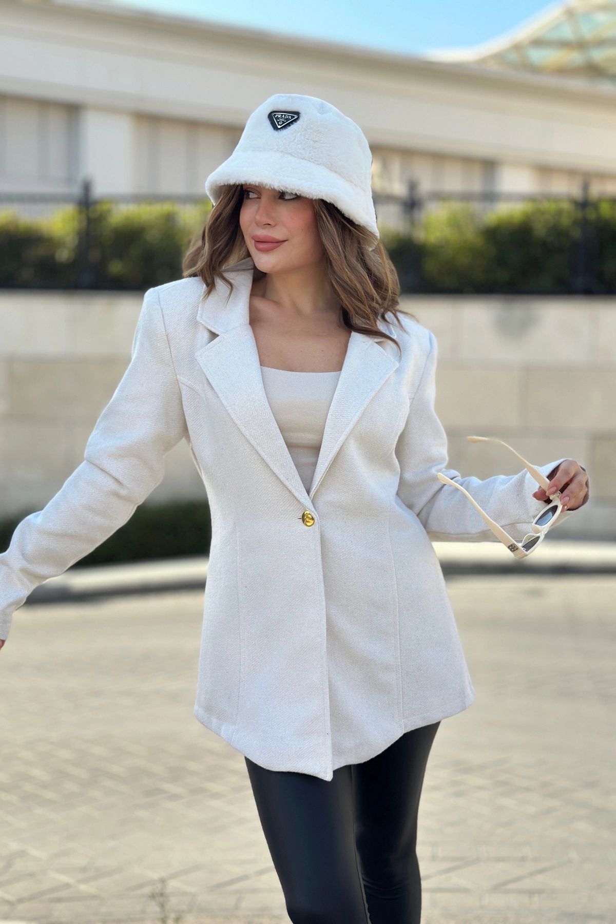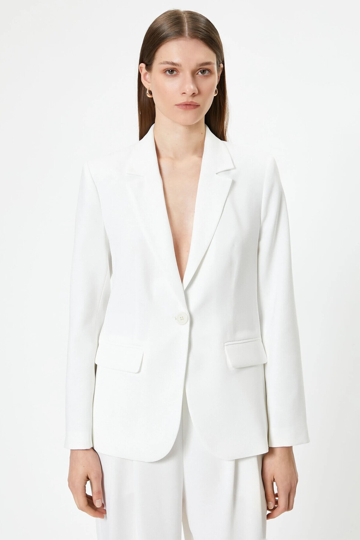 Kadın Beyaz Astarlı, Tek Düğme, Vucüda Oturan Kalıp, Fitilli Kaşe Kumaş Blazer Ceket Kadın Beyaz Astarlı, Tek Düğme, Vucüda Oturan Kalıp, Fitilli Kaşe Kumaş Blazer Ceket NY3449 42