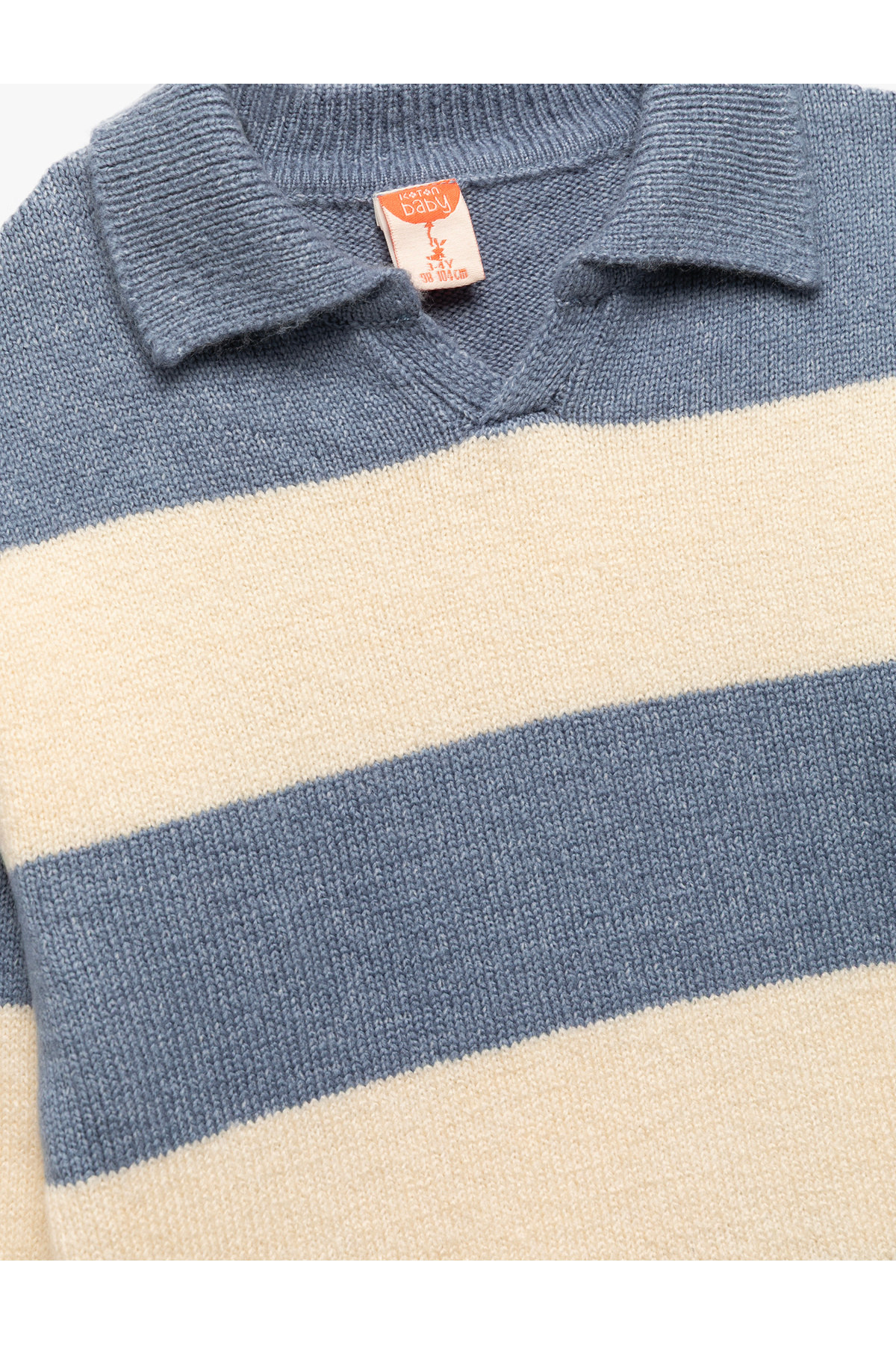 Uzun Kollu Çizgili Polo Yaka Triko Kazak Uzun Kollu Çizgili Polo Yaka Triko Kazak 6WMB90001TT 4-5 Yaş